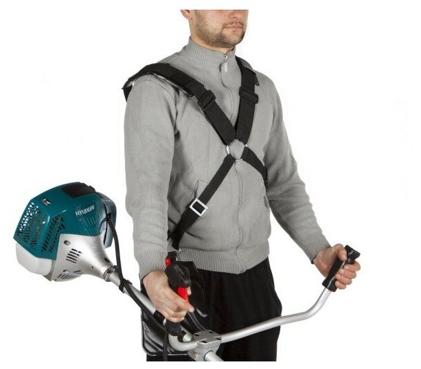 **Мотокоса бензиновая Hyundai 1.2 л. с. ** оснащена двухтактным двигателем объемом 32,6 см³, мощностью 1,22 л. с. . (0,9 кВт). Предназначена для скашивания газонов и придомовых территорий максимальной площадью до 1000 м². Ширина скашивания составляет 43 см, диаметр ножа — 25,5 мм. Для удобства работы устройство комплектуется наплечными ремнями с фиксаторами, позволяющими правильно распределить центр тяжести и снять напряжение со спины и рук.