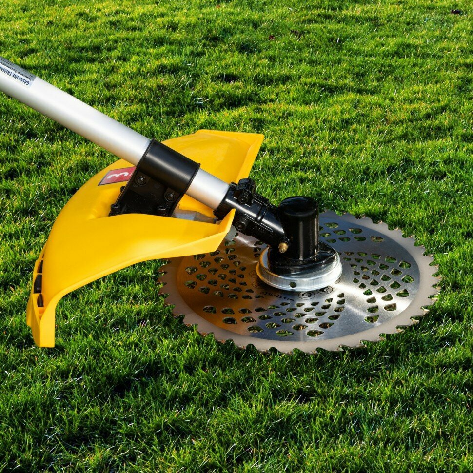 В зависимости от рельефа местности и плотности растительного покрова предусмотрена быстрая замена режущего инструмента: стальной режущий диск, предназначенный для работы с жесткой травой и молодым кустарником, меняется на режущую полуавтоматическую триммерную катушку с леской для скашивания травы.