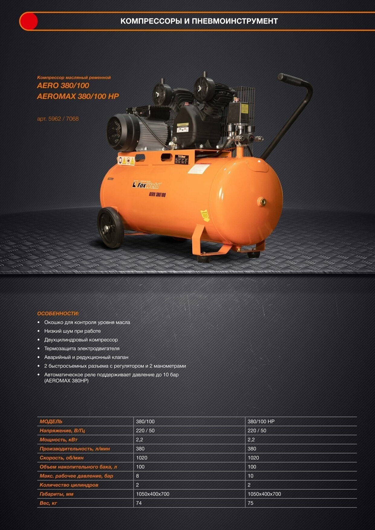Компрессор Foxweld 5962 aero 380/100