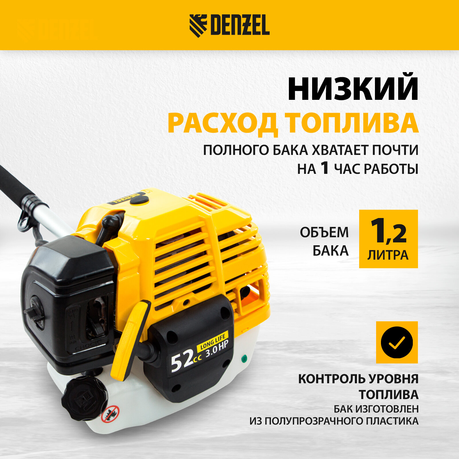 - Триммер бензиновый Denzel DT 52, арт. 96226, 96227