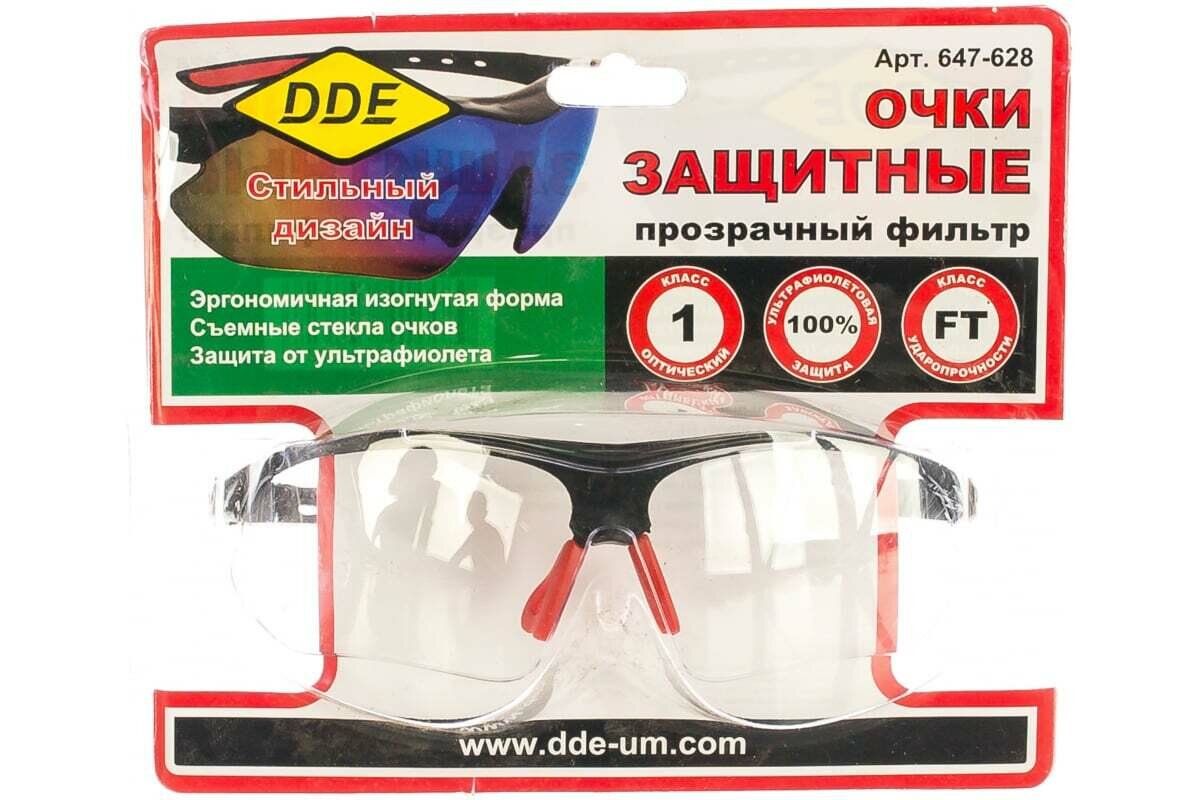 Очки защитные DDE – универсальный аксессуар для защиты зрения. Он поможет в работе с различными инструментами. Очки подходят для дневного времени суток. Аксессуар открытого типа, что обеспечивает прямую вентиляцию. Прозрачные линзы защищены от солнца., Оправа и дужки изготовлены из прочного пластика. Дужки не регулируемые, но складывающиеся. Конструкция удобна для хранения и ежедневного использования. Очки защитные DDE имеют следующие габариты