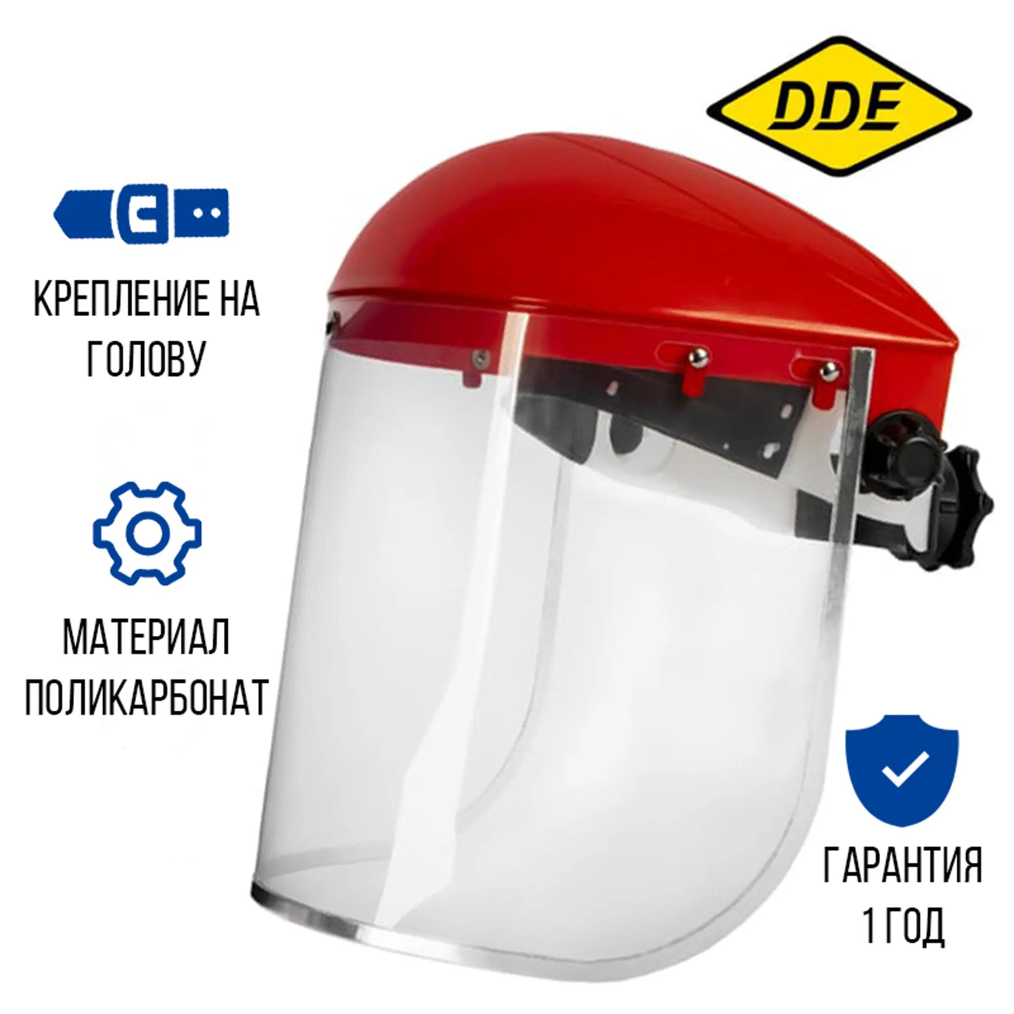Защитные лицевой щиток DDE с прозрачным экраном из поликарбоната - идеальное решение для защиты лица во время кошения травы триммером. Изготовлен из надежных и качественных материалов.