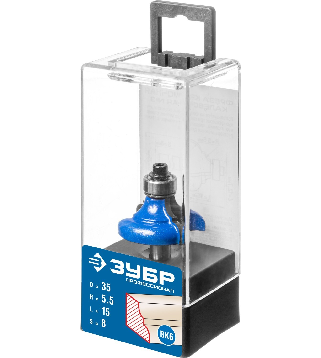 Фреза кромочная калевочная №3, D= 35мм, рабочая длина-15мм, радиус-5,5мм, хв.-8мм, d-12,7мм, ЗУБР Профессионал