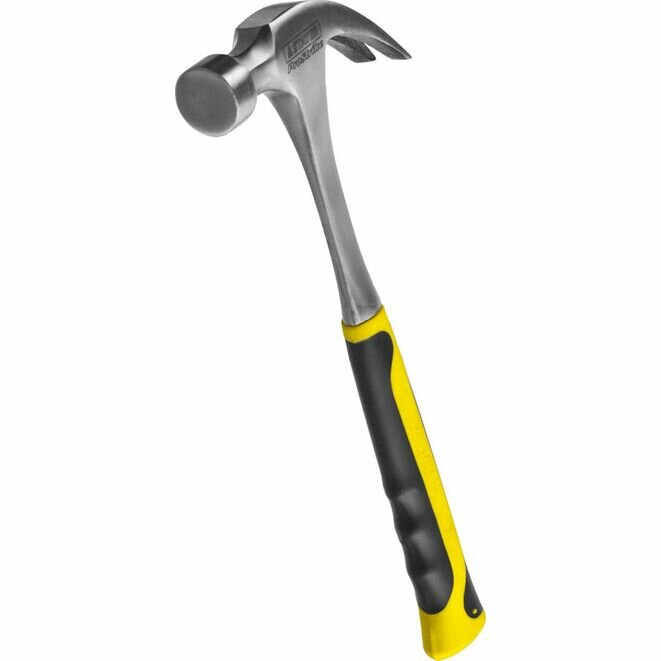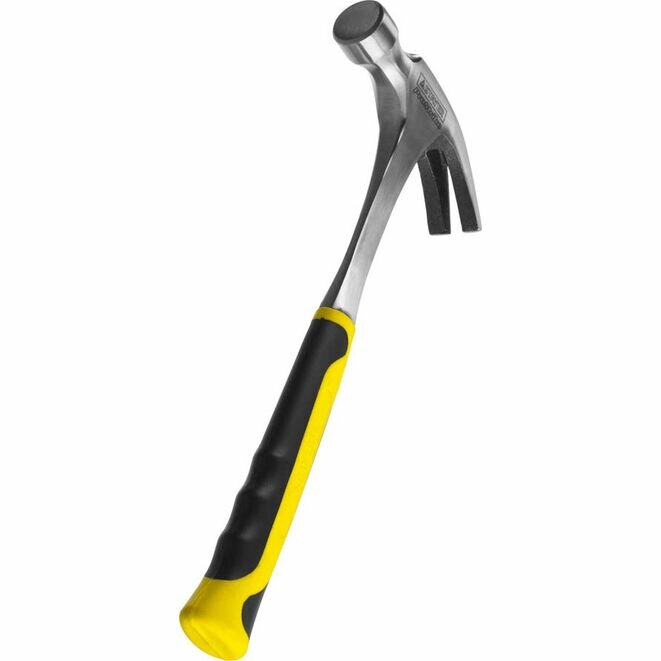 Цельнометаллический молоток-гвоздодер с двухкомпонентной рукояткой 560г Stayer PROFESSIONAL 2025-560 - прочный, надежный и долговечный в работе ручной инструмент, который изготовлен с использованием новейших технологий. Он имеет цельную стальную конструкцию, выполнен методом ковки. Рукоятка молотка состоит из нескользящего двухкомпонентного материала, который гасит отдачу при ударах и снижает усталость кистей рук пользователя.