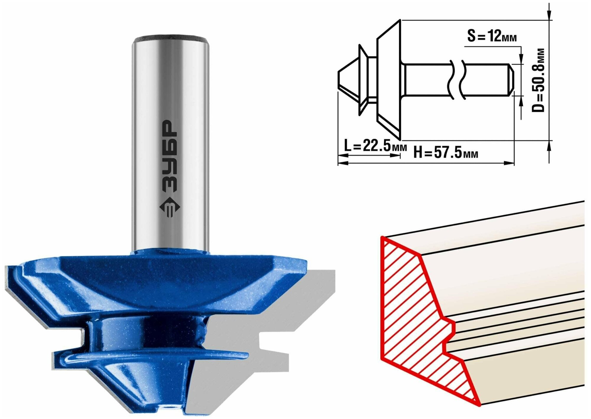 Фреза кромочная для углового сращивания, D= 50,8мм, рабочая длина-22,5мм,хв.-12мм, ЗУБР Профессионал
