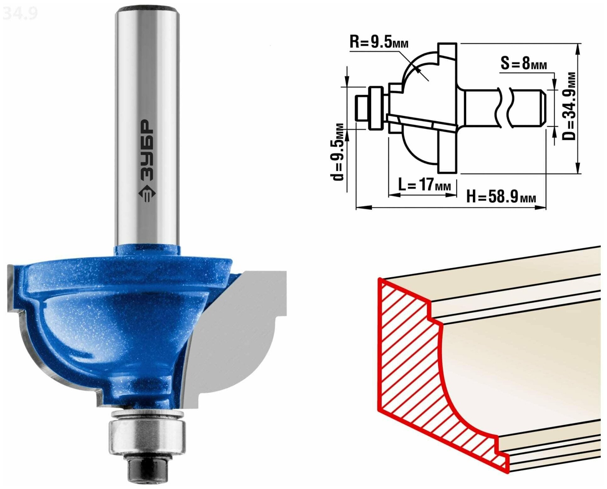 Кромочная калевочная фреза ЗУБР 28709-34.9