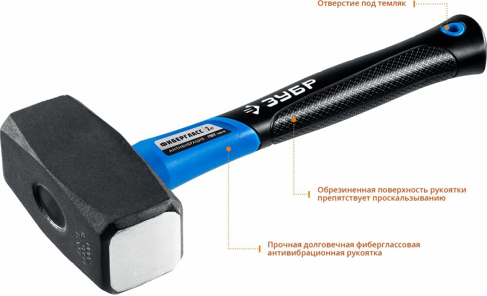 Профессиональная кувалда ЗУБР оснащена особопрочной фибергласовой рукояткой. АВТ - технология позволяет существенно снизить вибрации, возникающие во время удара, что делает работу с инструментом более комфортной. Соответствует требованиям ГОСТ 2310- 77.- Масса головы: 1 кг- Длина рукоятки: 250 мм- Материал головы: Сталь 45 - Закалка головы: Индукционная - Материал рукоятки: Двухкомпонентная фиберглассовая рукоятка - Конструкция крепления головы к рукоятке: Сверхпрочное - Рельефное противоскользящее покрытие рукоятки: да - Отверстие для подвеса инструмента: да