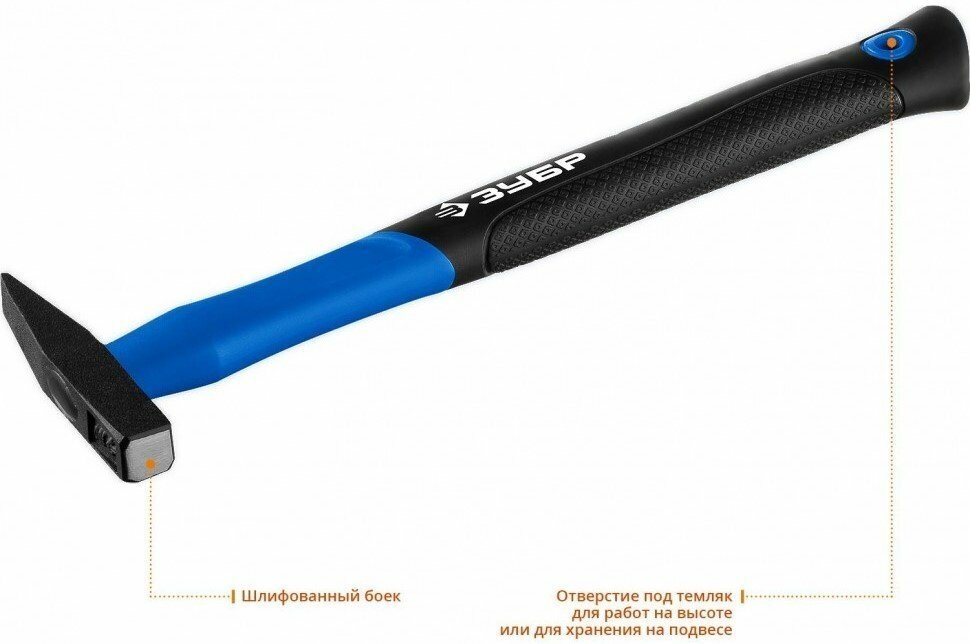 Слесарный молоток ЗУБР Профессионал Фибергласс с фиберглассовой рукояткой 1500 г (_z01)Модель - _z01Технические характеристики:-Масса головы: 1 500 г-Материал головы: сталь 45 -Закалка головы: Индукционная -Материал рукоятки: Двухкомпонентная фиберглассовая -Конструкция крепления головы к рукоятке: Сверхпрочное -Отверстие для подвеса инструмента: да -Особенность: Рельефное противоскользящее покрытие рукояткиМолоток ЗУБР профессионал оснащен особопрочной фибергласовой рукояткой. АВТ - технология позволяет существенно снизить вибрации, возникающие во время удара, что делает работу с инструментом более комфортной. Соответствует требованиям ГОСТ 2310-77.Преимущества:-Особопрочное крепление головы;-Антивибрационная технолгия (АВТ);-Кованая голова;-Рельефное противоскользящее покрытие рукоятки;-Фиберглассовая рукоятка;