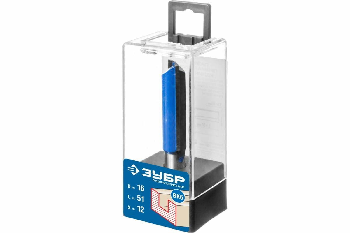 Фреза пазовая прямая, удлиненная, D= 16мм, рабочая длина-51мм, хв.-12 мм, ЗУБР Профессионал