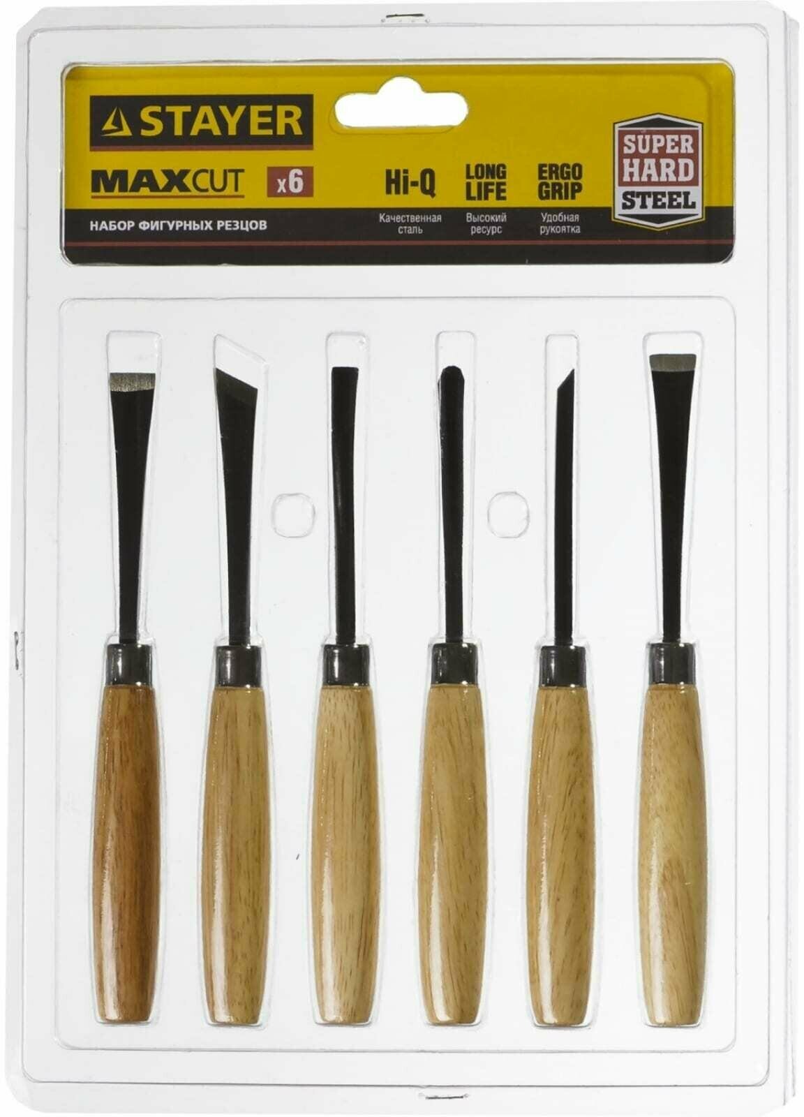 Набор фигурных резцов с деревянной ручкой, 6шт Stayer подходит для выполнения профессиональных резчицких работ в условиях столярных мастерских или производственных участков. Представленные инструменты имеют разнообразные формы рабочих профилей. Позволяют легко и удобно выполнять фигурную резку и обыкновенную выточку в деталях и заготовках из древесины и пластика.