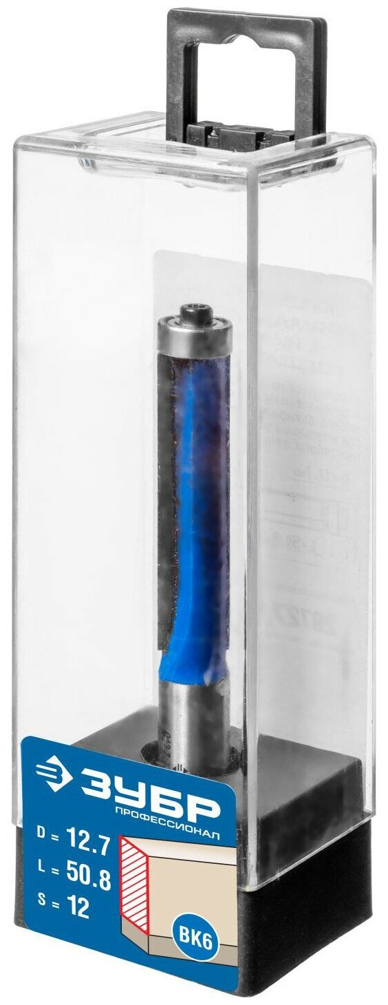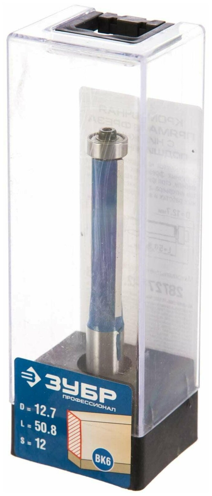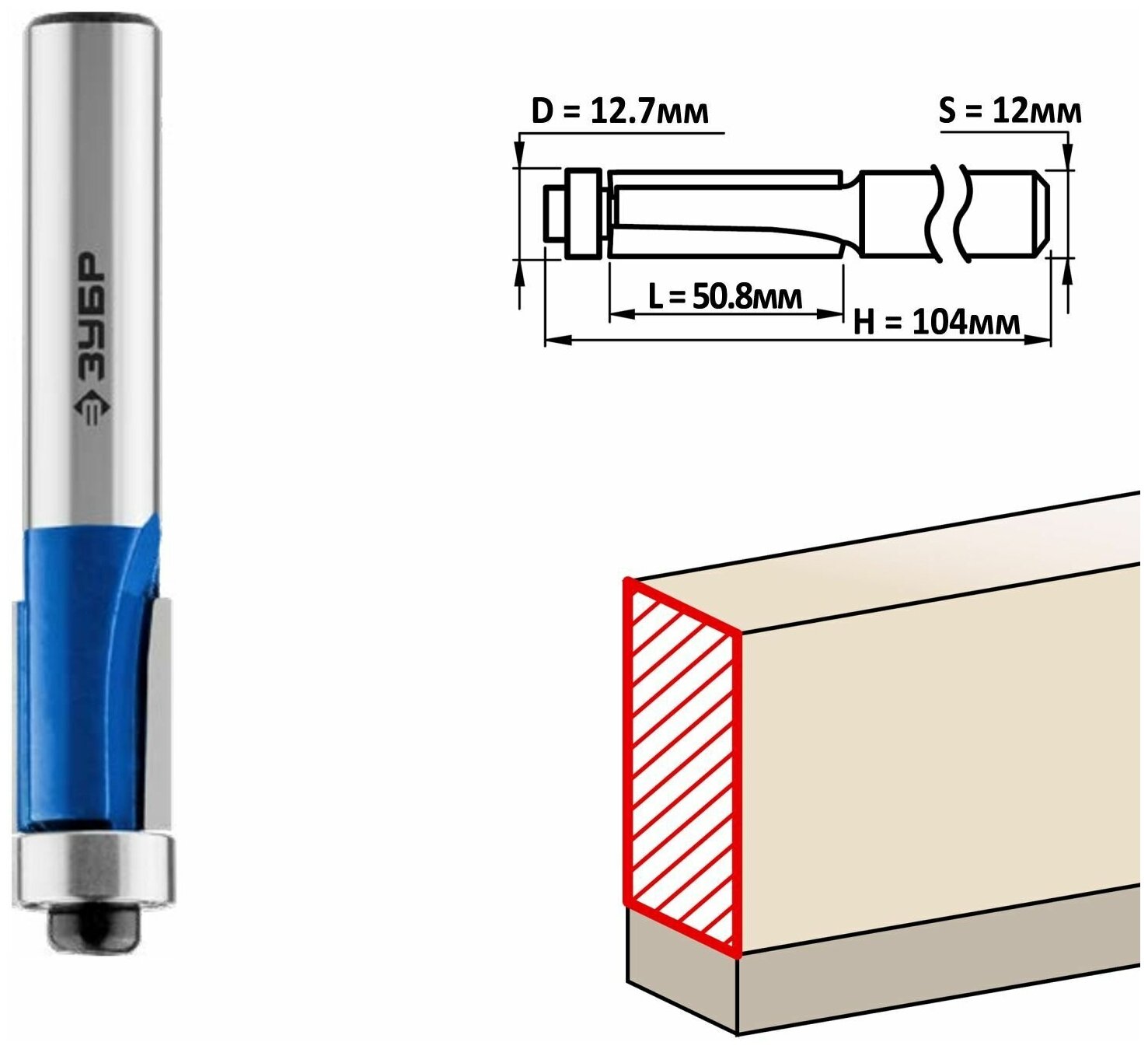 Фреза кромочная с нижним подшипником, D= 12,7мм, рабочая длина-50,8мм, хв.-12мм, d-12,7мм, ЗУБР Профессионал