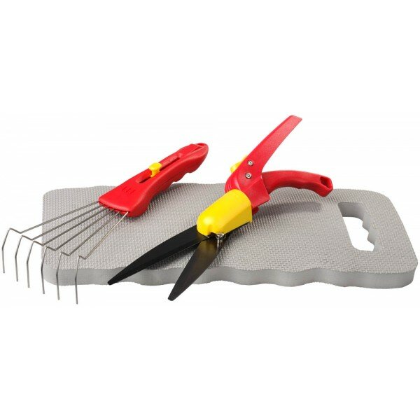 | Комплектация | ножницы для стрижки травы - 1 шт; грабельки веерные раздвижные - 1 шт; подколенник - 1 шт |