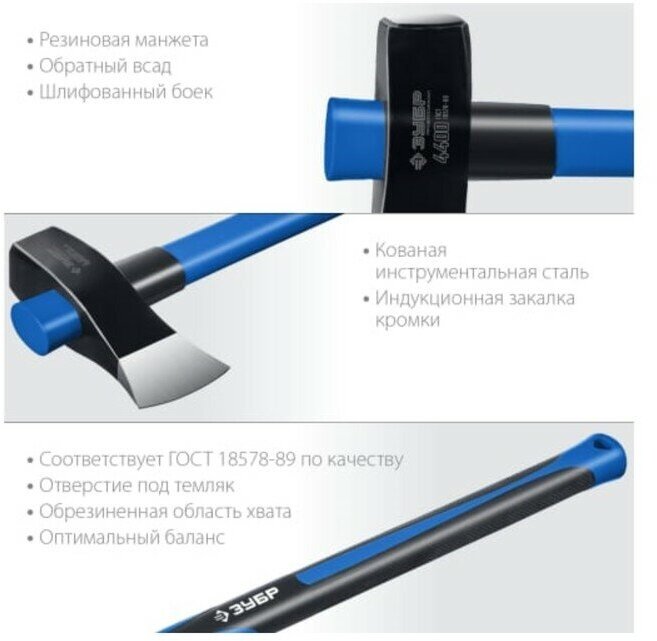 С помощью инструмента можно наколоть дрова для разведения огня, а также собрать запас на зиму. Он выдерживает даже самую высокую нагрузку и тяжелые условия эксплуатации. Также к особенностям относятся: