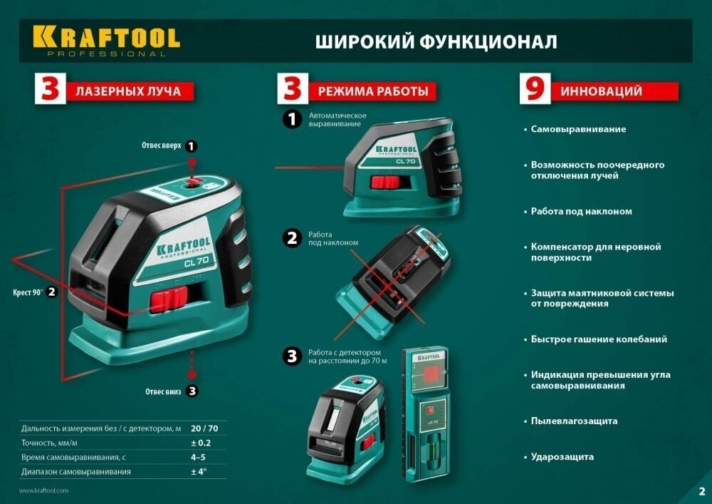 | Доп. наименование Водопад | Лазерный нивелир Kraftool CL-70 34660 |