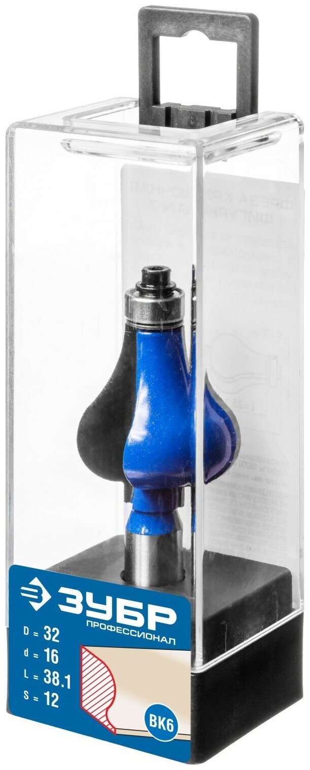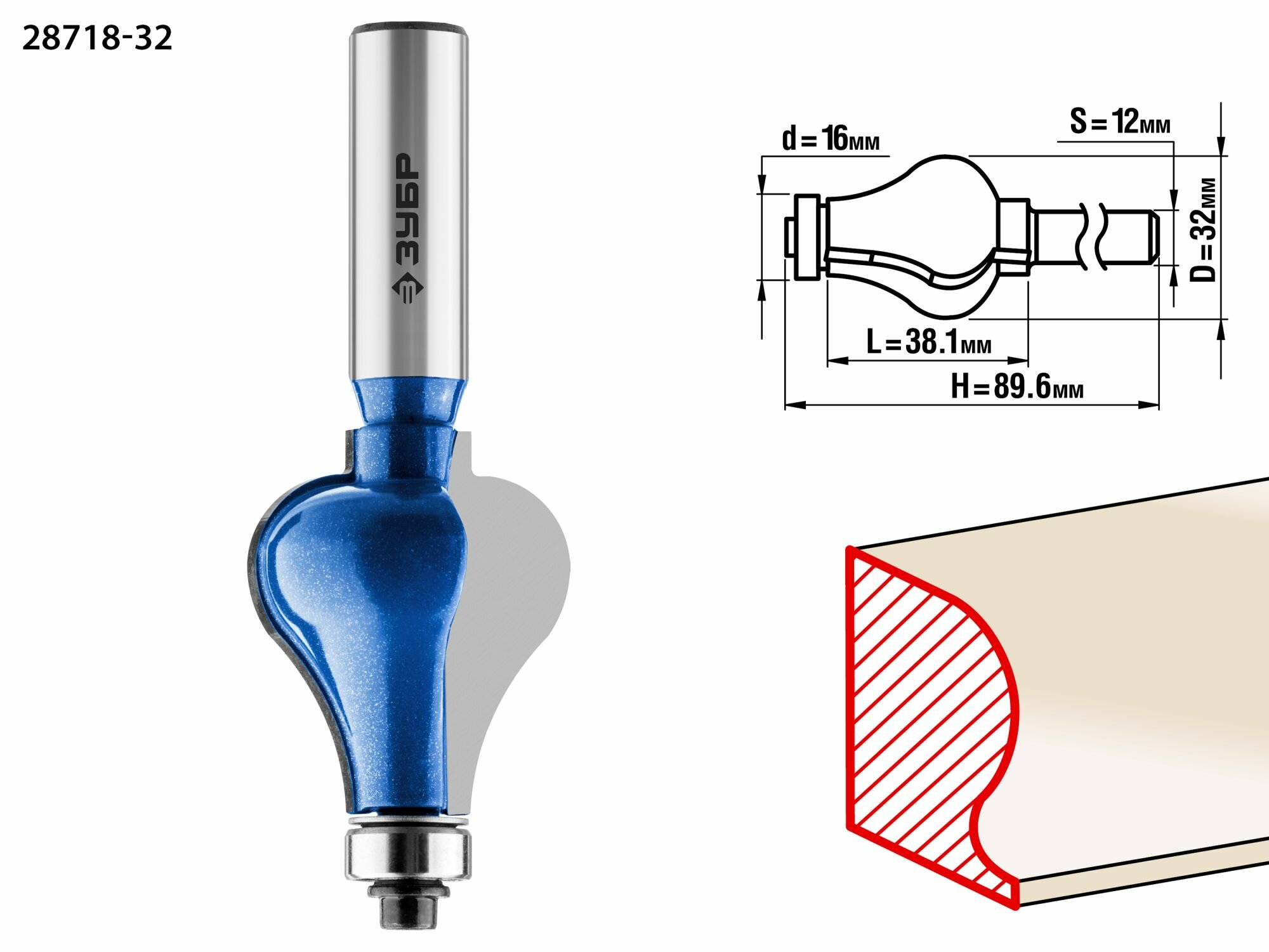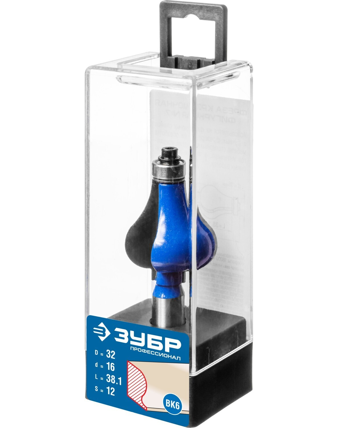 Фреза кромочная фигурная №7, D= 32мм, рабочая длина-38,1мм, хв.-12мм, d-16мм, ЗУБР Профессионал