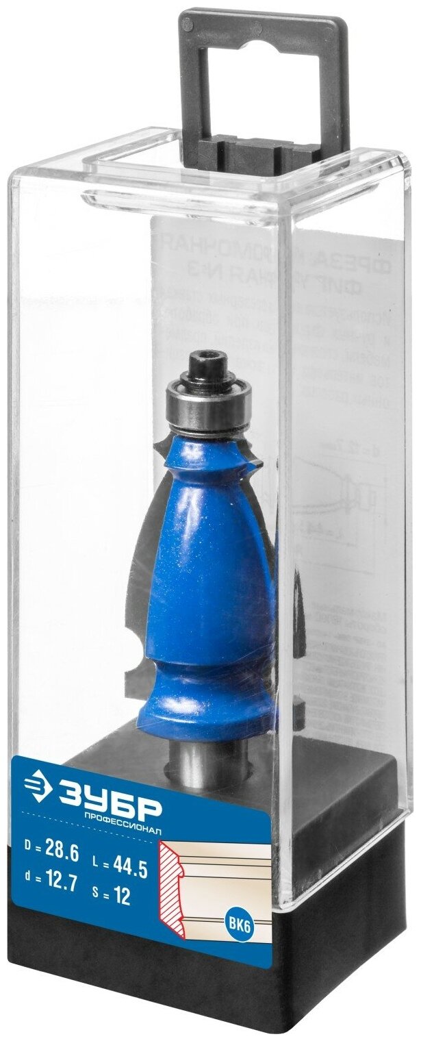 Фреза кромочная фигурная №3, D= 28,6мм, рабочая длина-44,5мм, хв.-12мм, d-12,7мм, ЗУБР Профессионал