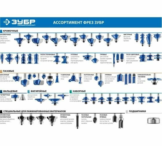 Фрезы кромочные калевочные №1 "ЗУБР" арт. 28701-ххх