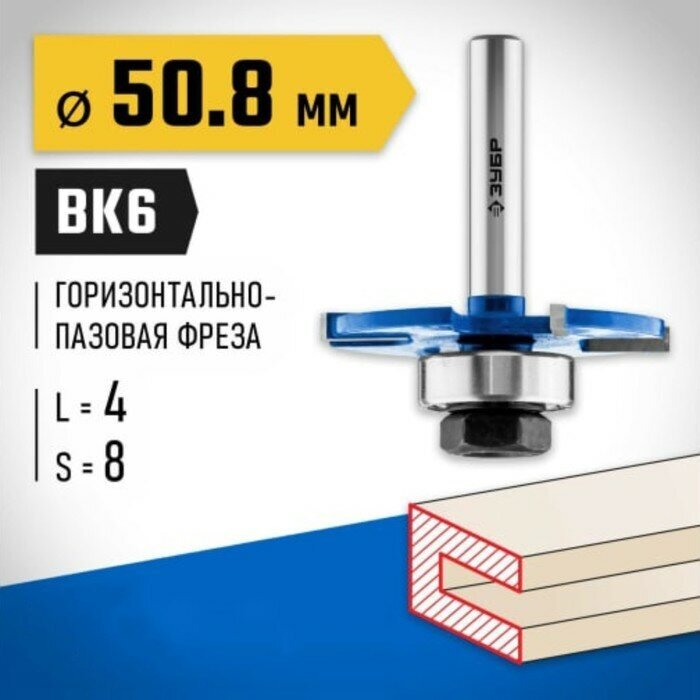 Фреза горизонтально-пазовая, D= 50,8мм, высота-4мм, хв.-8мм, d-22мм, ЗУБР Профессионал
