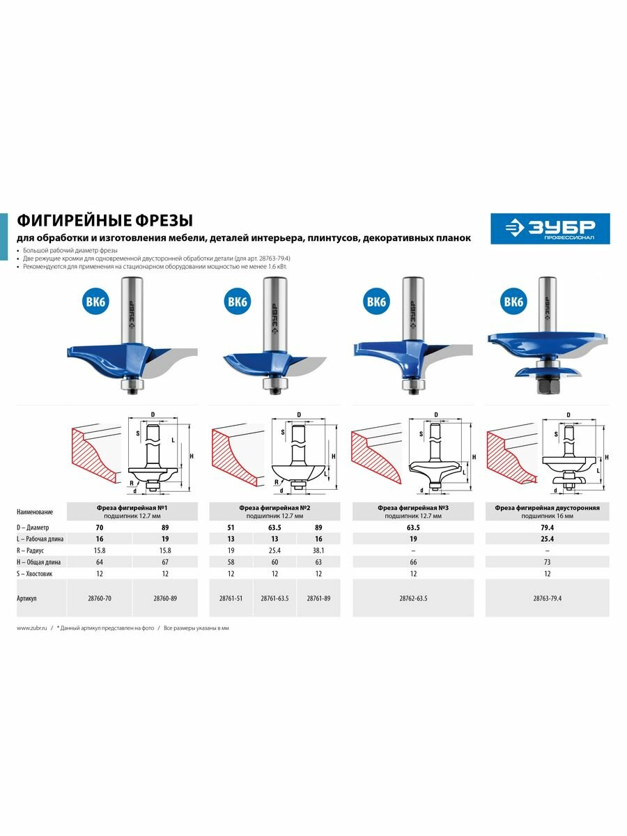 Двухсторонняя фигирейная фреза ЗУБР 28760-89