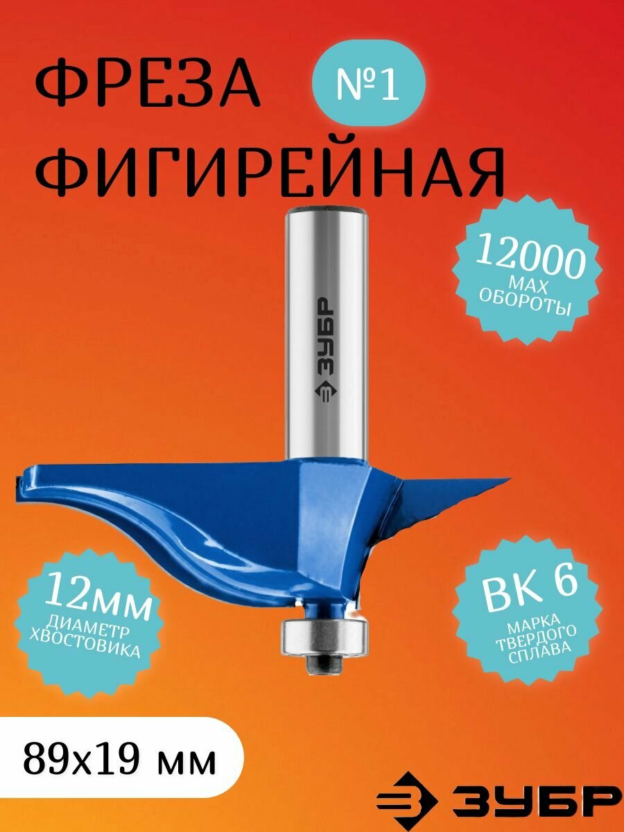 Фреза фигирейная №1, D= 89мм, рабочая длина-19мм, радиус-15,8мм, хв.-12мм, d-12,7мм, ЗУБР Профессионал