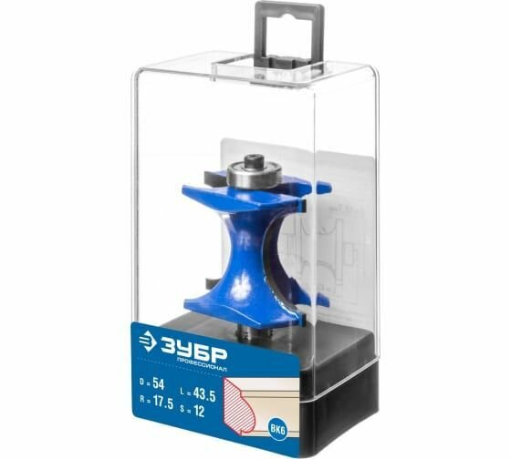 Фреза полустержневая с подшипником, D= 54мм, рабочая длина-43,5мм, радиус-17,5мм, хв.-12мм, d-12,7мм, ЗУБР Профессионал