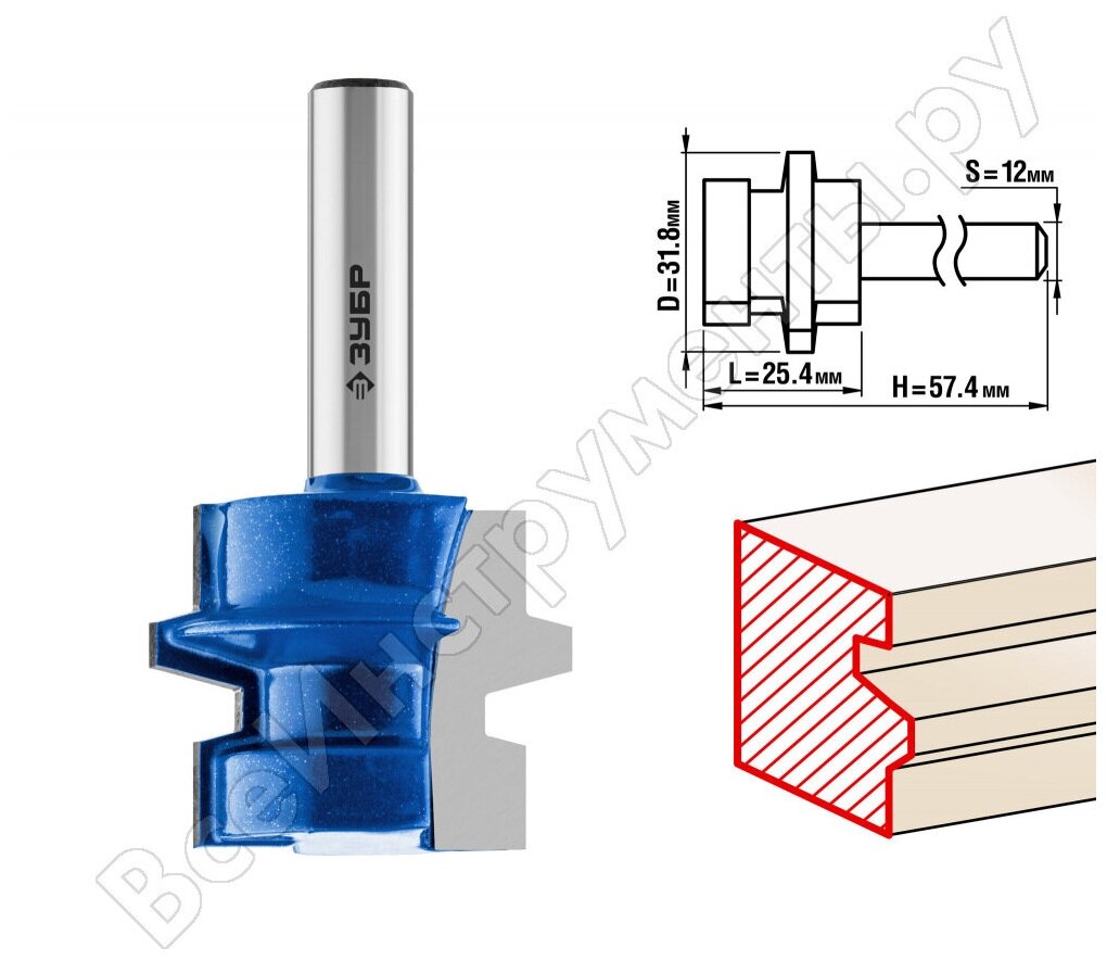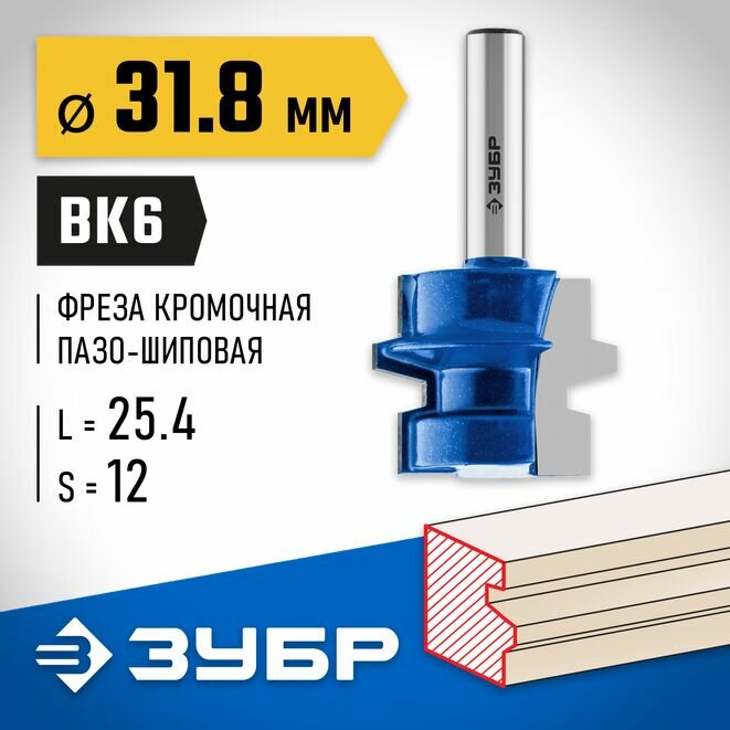 Фреза комбинированная универсальная, D= 31,8мм, рабочая длина-25,4мм, хв.-12 мм, ЗУБР Профессионал