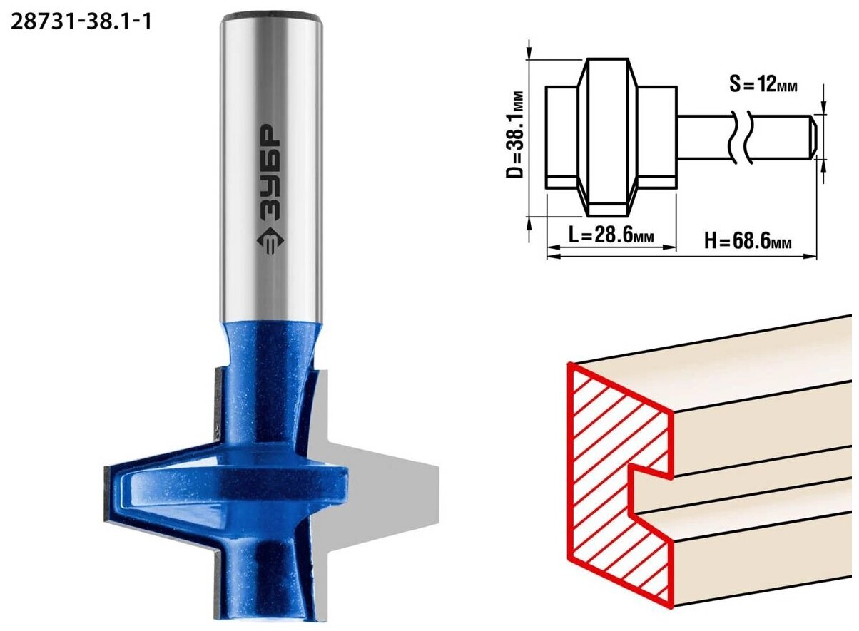Фреза пазо-шиповая наборная, D= 38,1мм, рабочая длина-28,6мм, хв.-12 мм, ЗУБР Профессионал