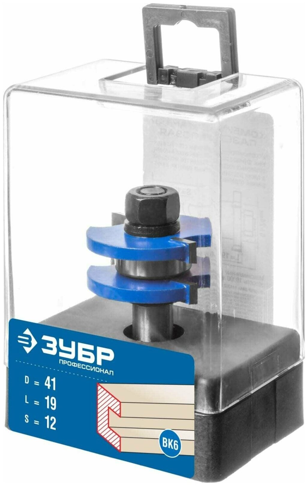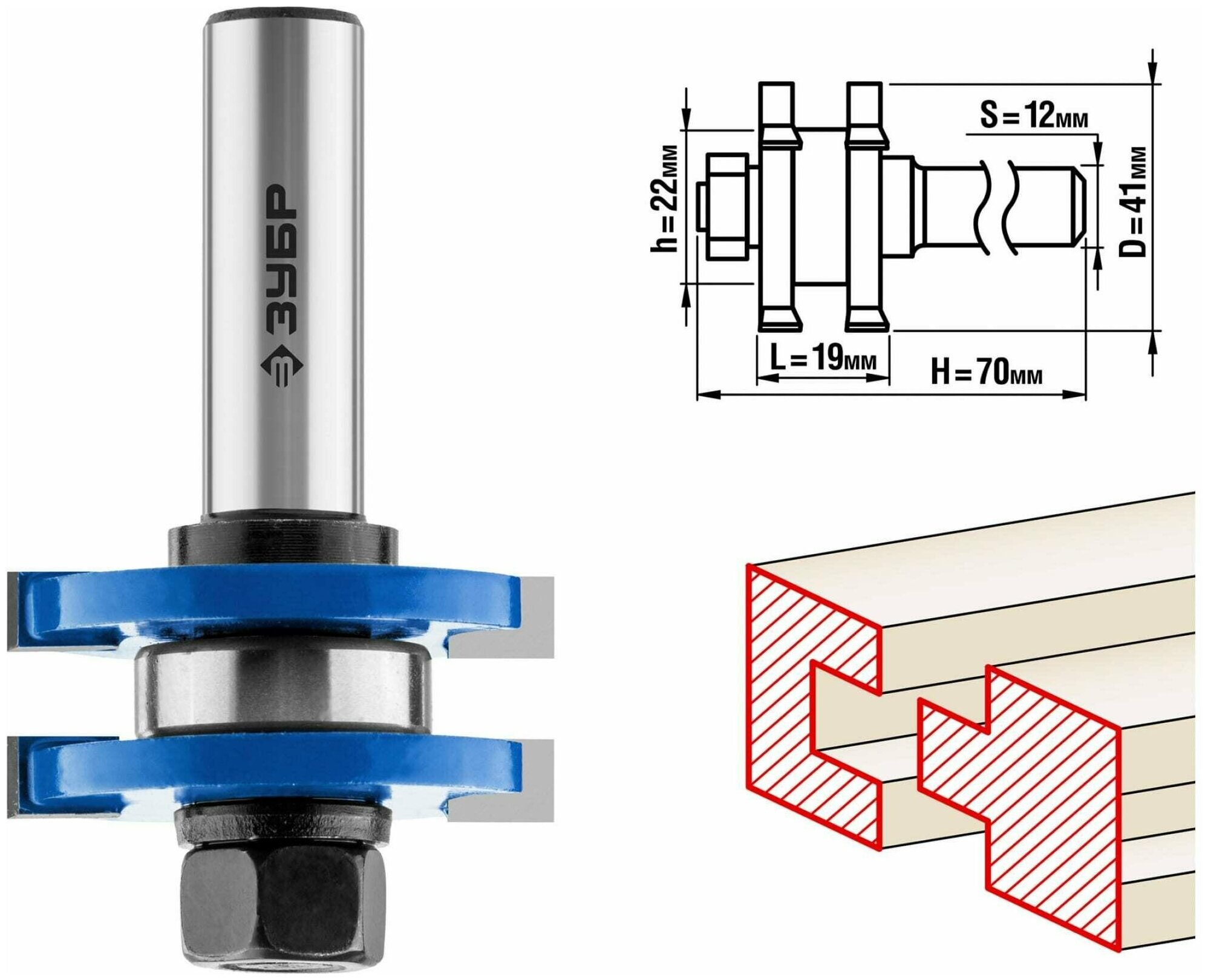 Фреза комбинированная пазо-шиповая, D= 41мм, рабочая длина-19мм, хв.-12мм, d-22мм, ЗУБР Профессионал