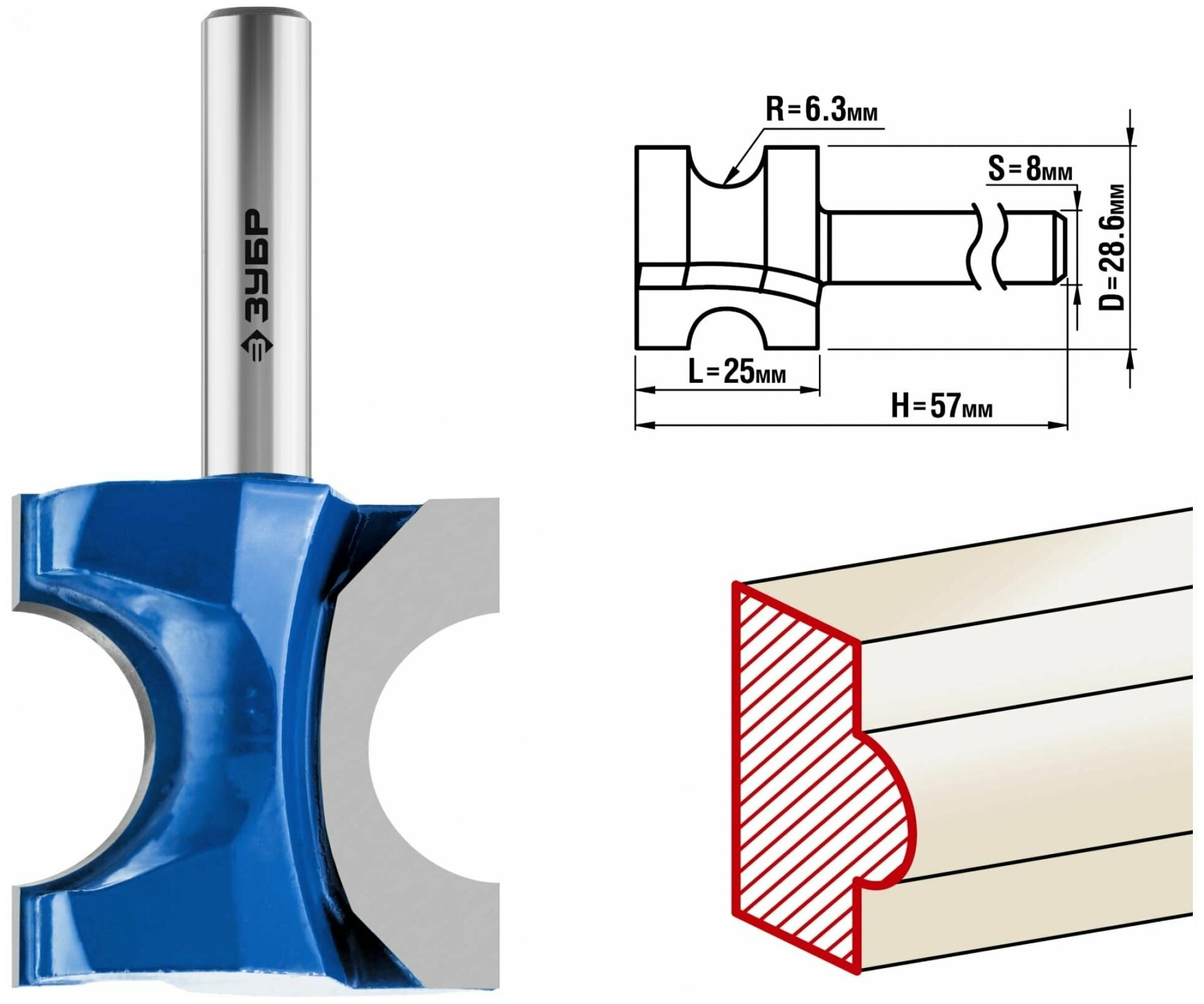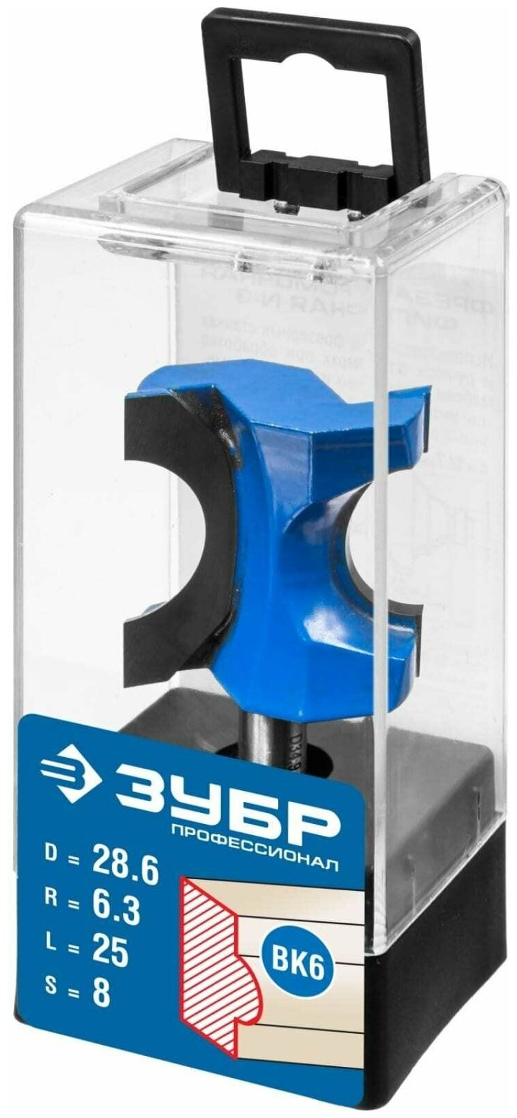 Фреза полустержневая, D= 28,6мм, рабочая длина-25мм, радиус-6,3мм, хв.-8 мм, ЗУБР Профессионал