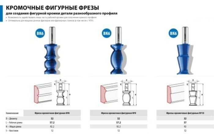| Разновидность фрезы | фигурная, кромочная |