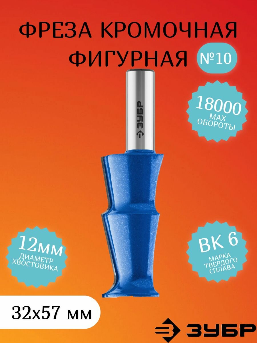 Фреза кромочная фигурная №10, D= 32мм, рабочая длина-57мм, хв.-12 мм, ЗУБР Профессионал