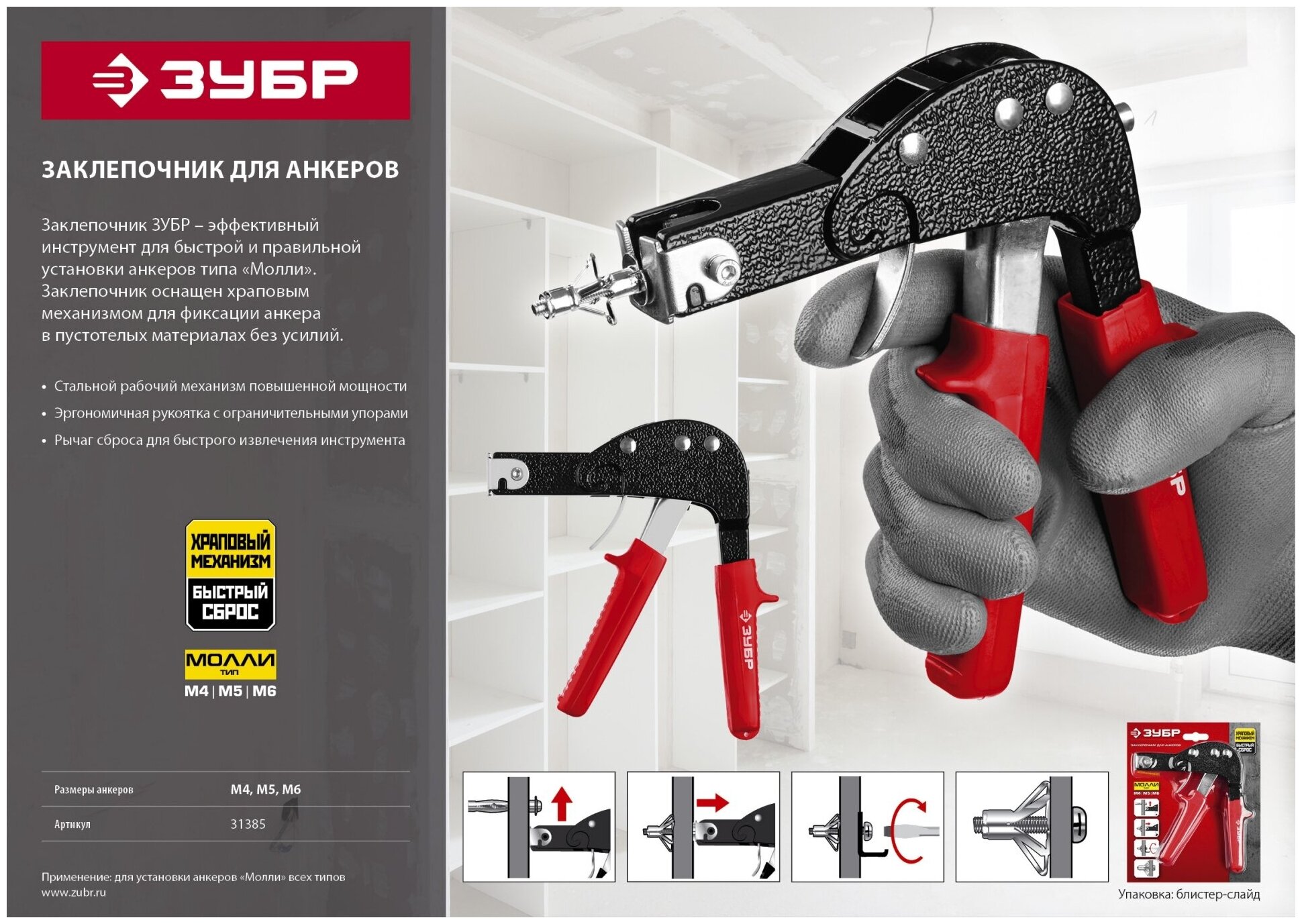 | Доп. наименование Водопад | Заклепочник Зубр МОЛЛИ 31385 для анкеров (дюбелей) |