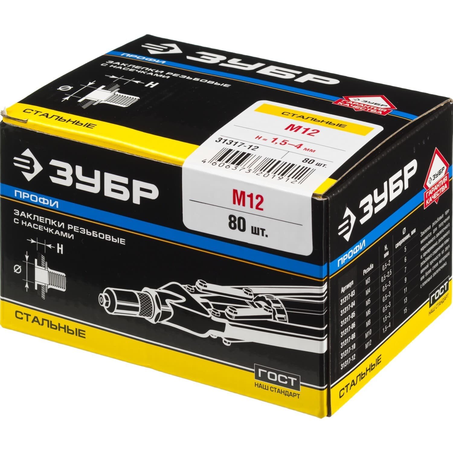 ЗУБР М12, станд.бортик, стальные резьбовые заклепки с насечками, 80 шт, Профессионал ()
