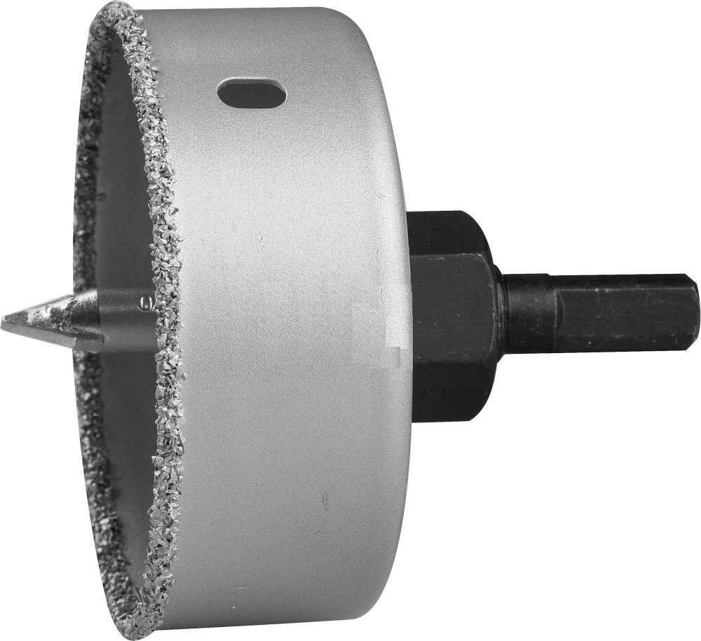 Буровая коронка-чашка с твердосплавным напылением ЗУБР 33360-067_z01, применяется при резке гипсокартона, кафельной и керамической плитки, кирпича, ячеистого бетона. Аккуратное сверление материала без трещин и сколов. Новейшая технология автоматического нанесения и спаивания твердосплавной крошки обеспечивает надежное соединение. Равномерное нанесение твердосплавных режущих элементов обеспечивает аккуратное сверление без трещин и сколов.