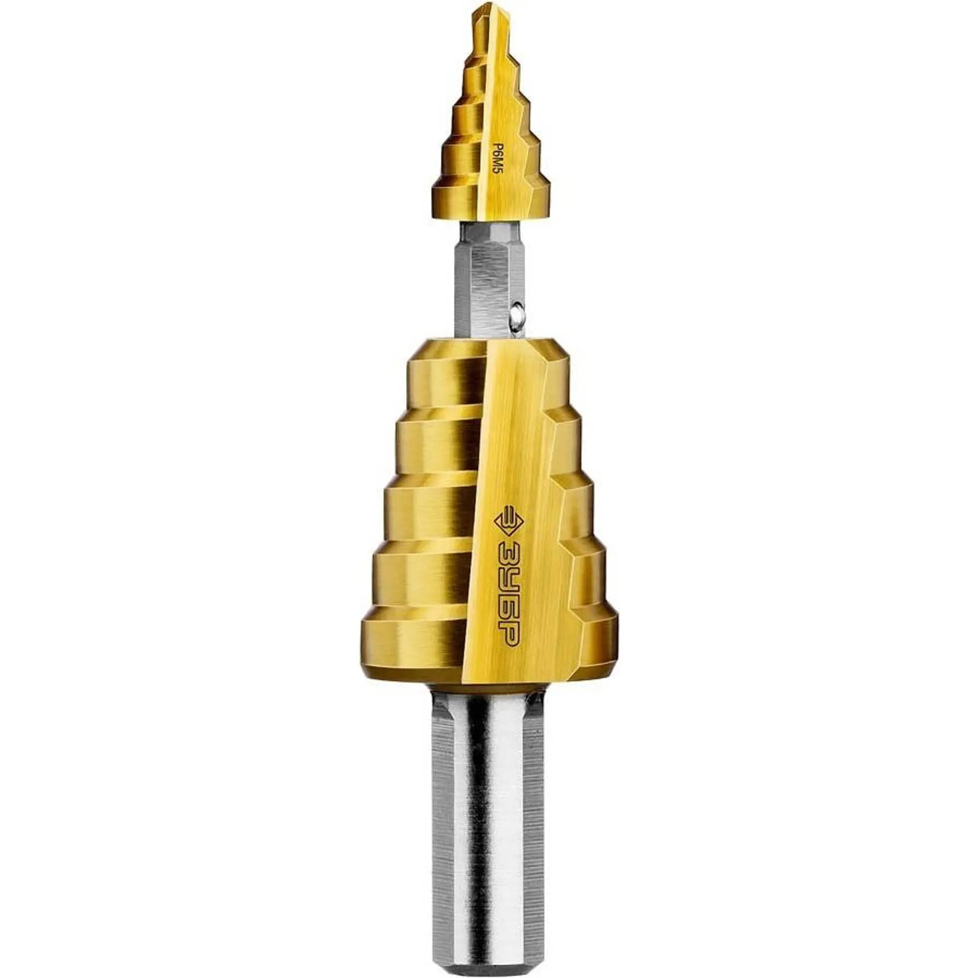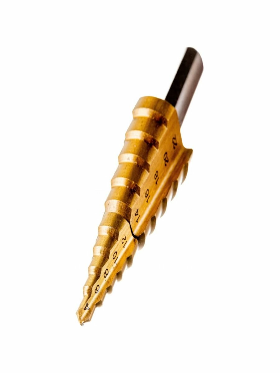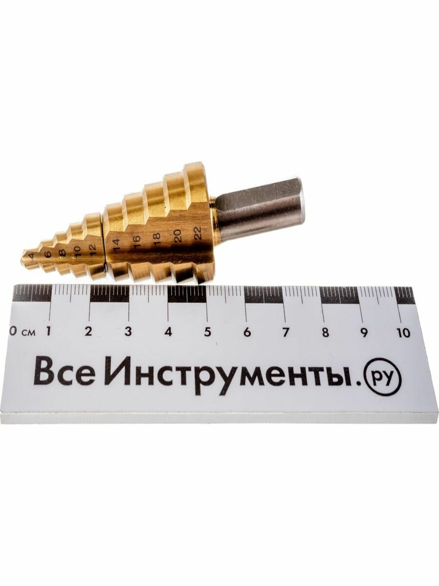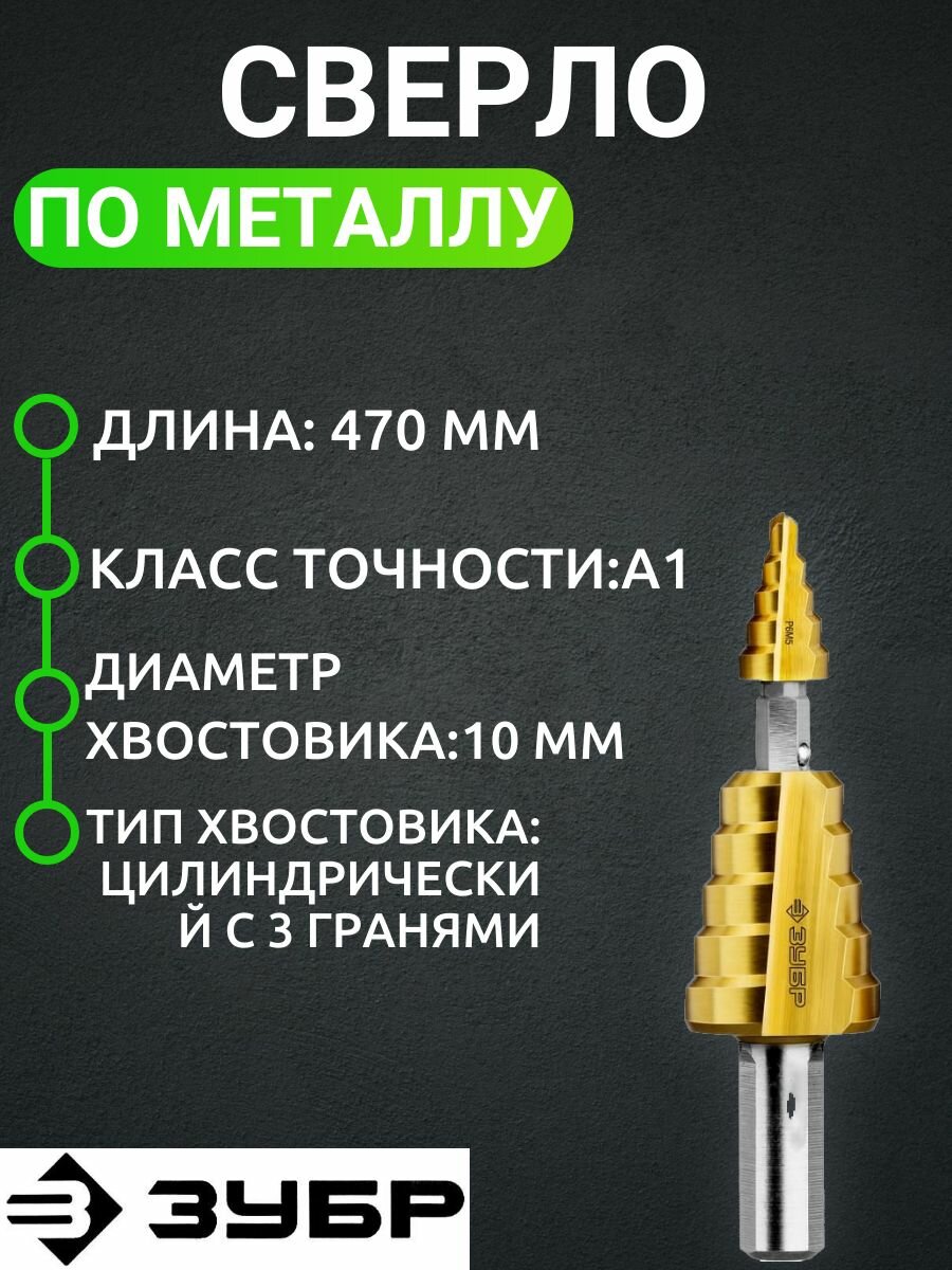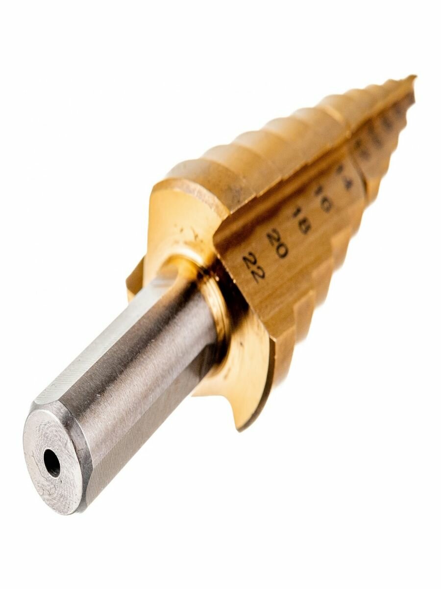 Сверло ступенчатое Зубр 29673-4-22 4-22мм, HSS-R, быстрорежущая сталь М2(S6-5-2) Р6М5, класс А 11 ступеней, кобальтовое покрытие