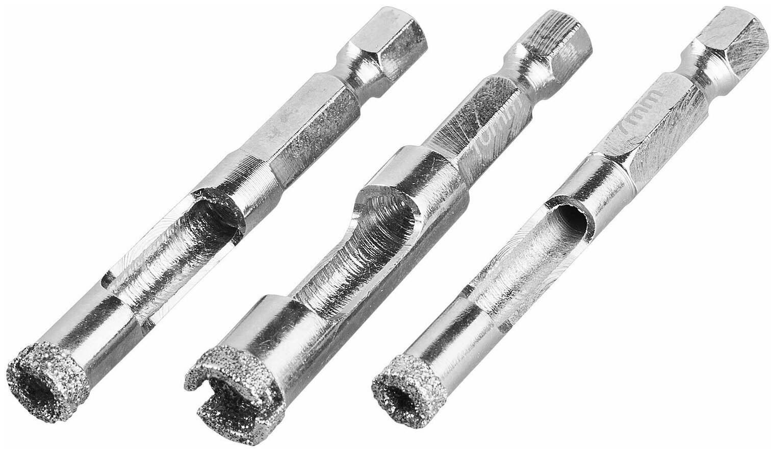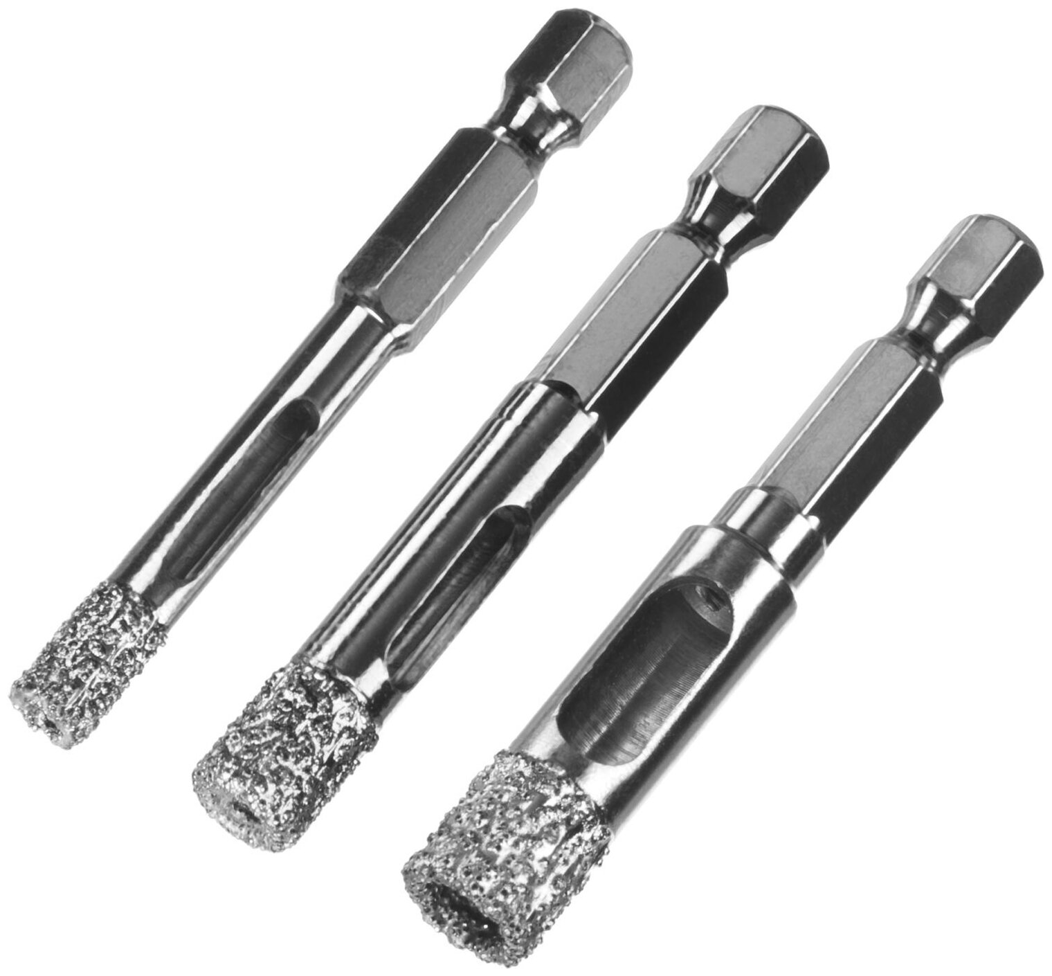 Набор сверл алмазных универсальных, технология ВВС, d=6, 8, 10 мм, хвостовик HEX 1/4", ЗУБР