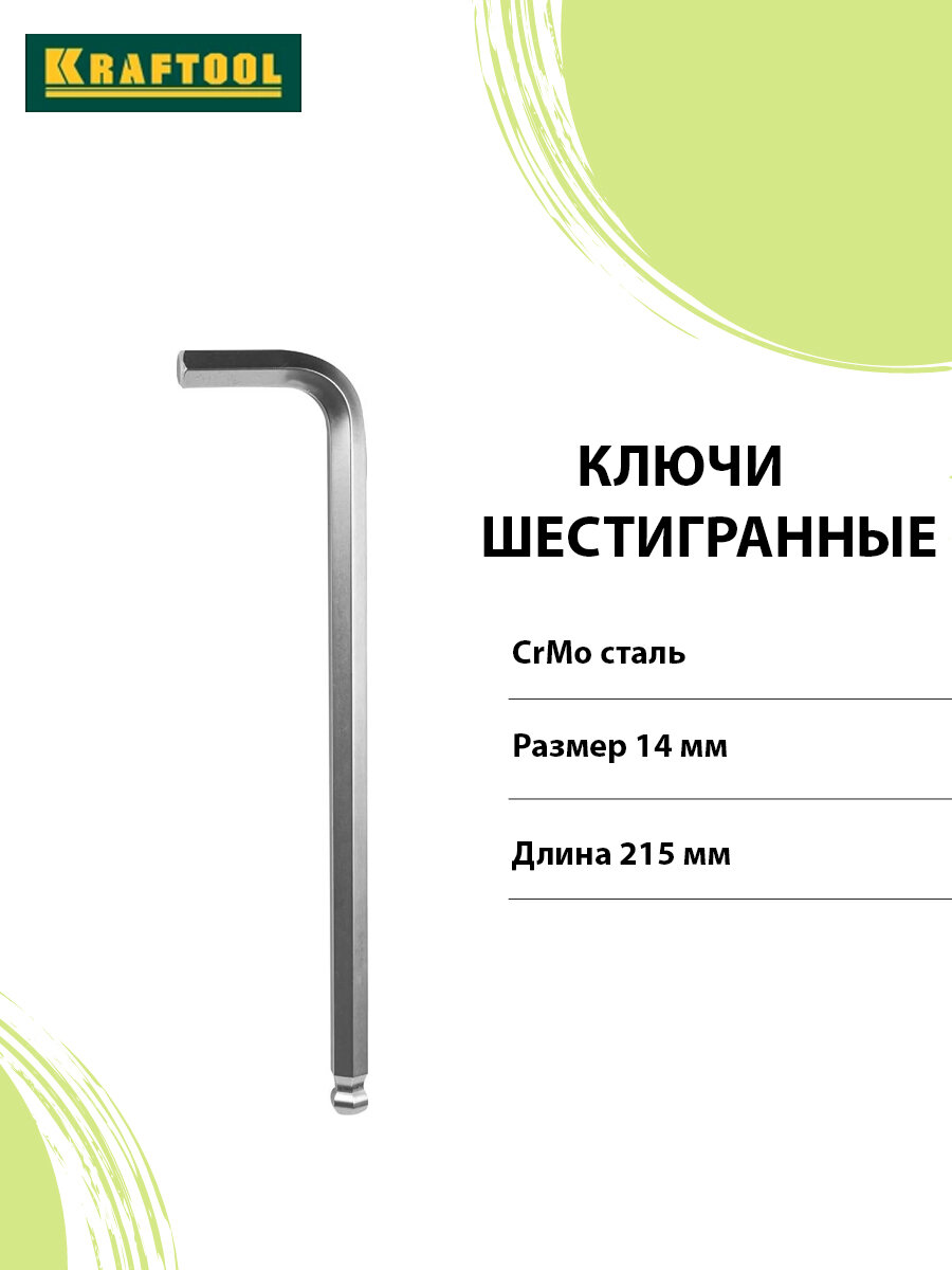 Ключ KRAFTOOL длинный c шариком, Cr-Mo, хромосатинированное покрытие, HEX 14