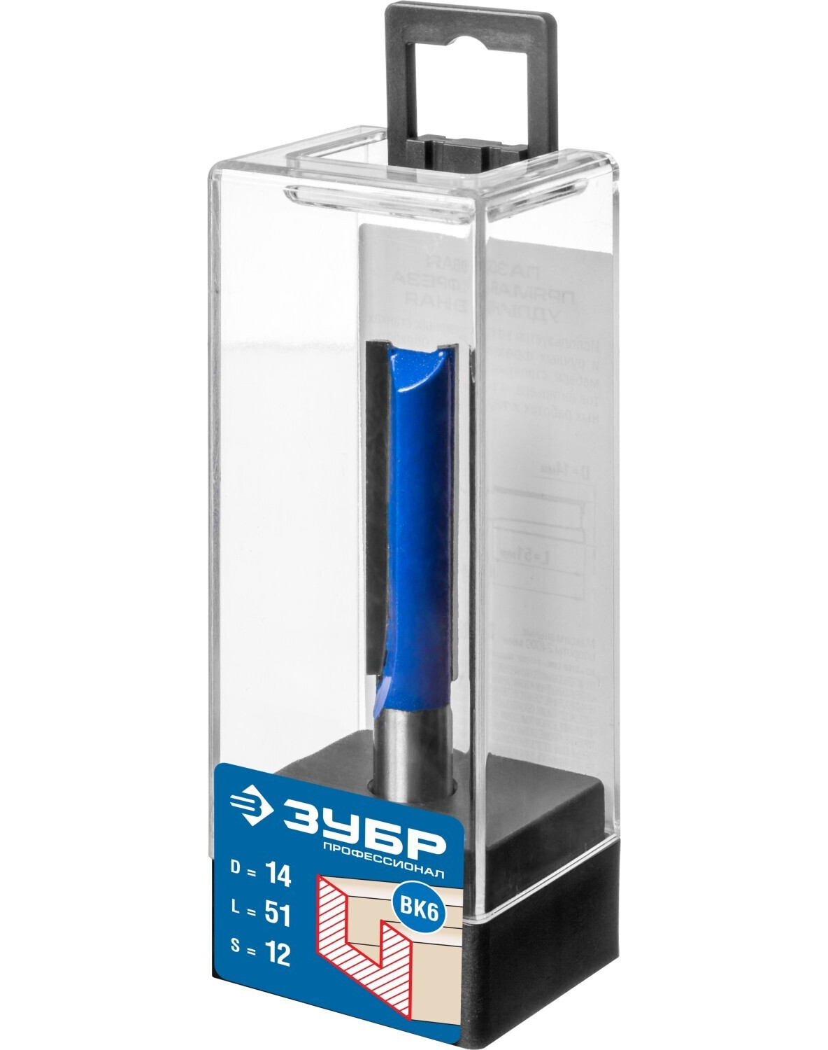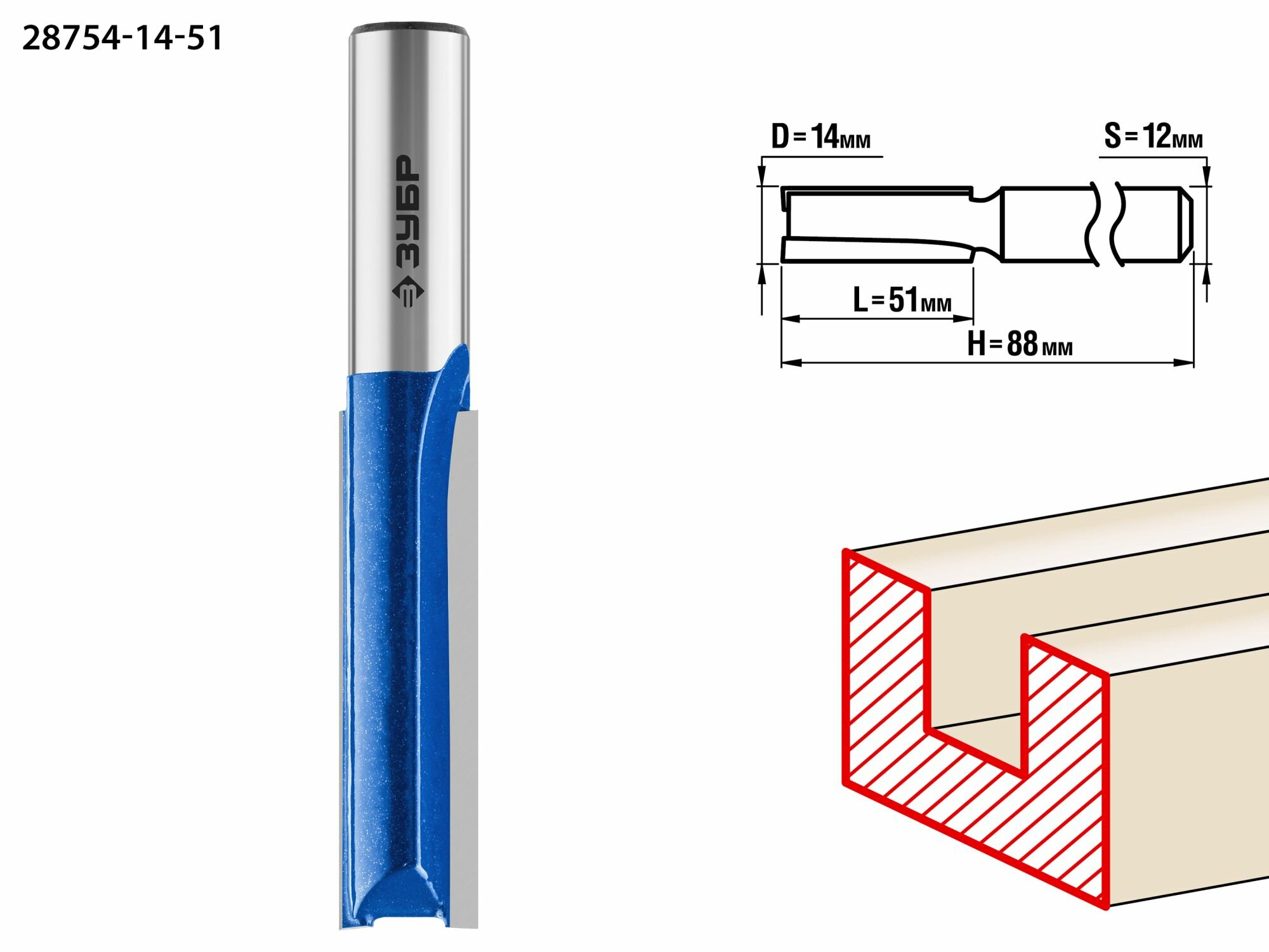 Фреза пазовая прямая, удлиненная, D= 14мм, рабочая длина-51мм, хв.-12 мм, ЗУБР Профессионал