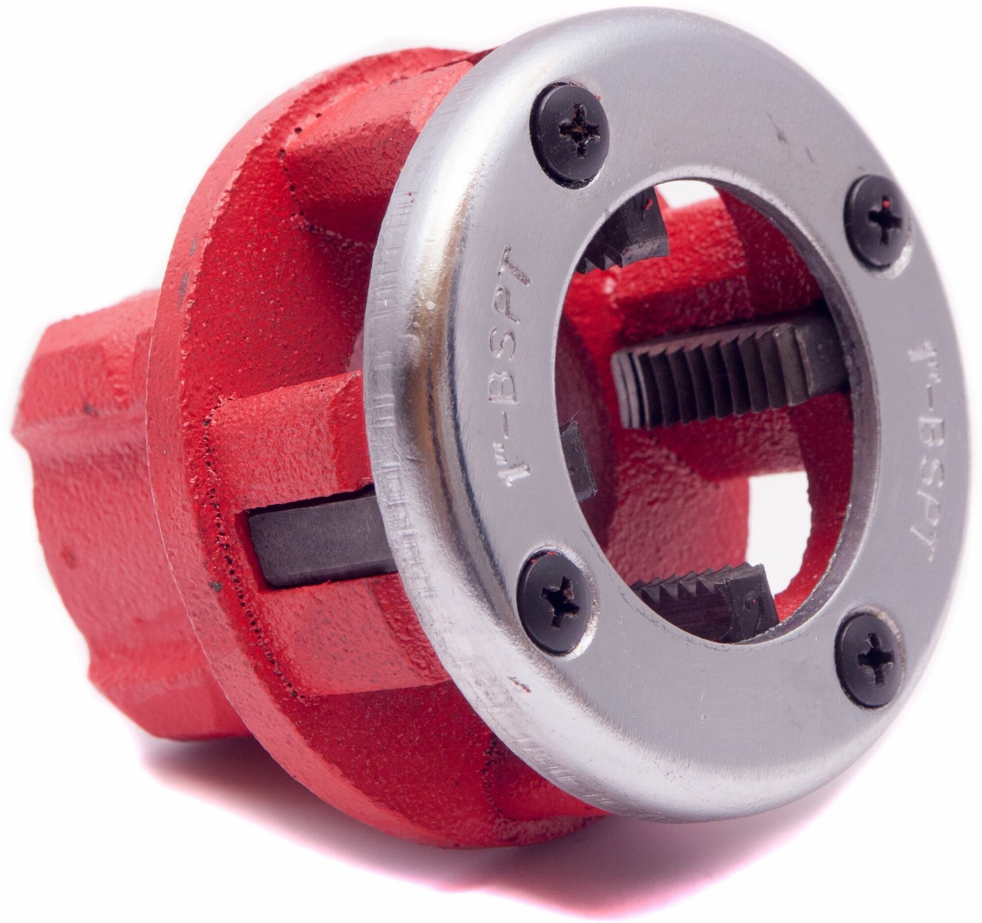 Для нарезания наружной резьбы на металлических трубах стандартного диаметра. Материал: высокопрочная инструментальная сталь.