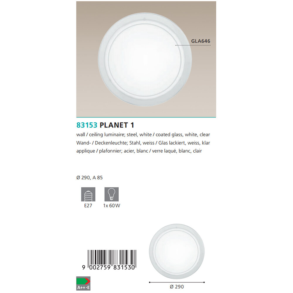 Сервис сравнения цен СкидкаГИД предлагает сравнить цены на товар «Светильник настенно-потолочный Eglo Planet 83153»