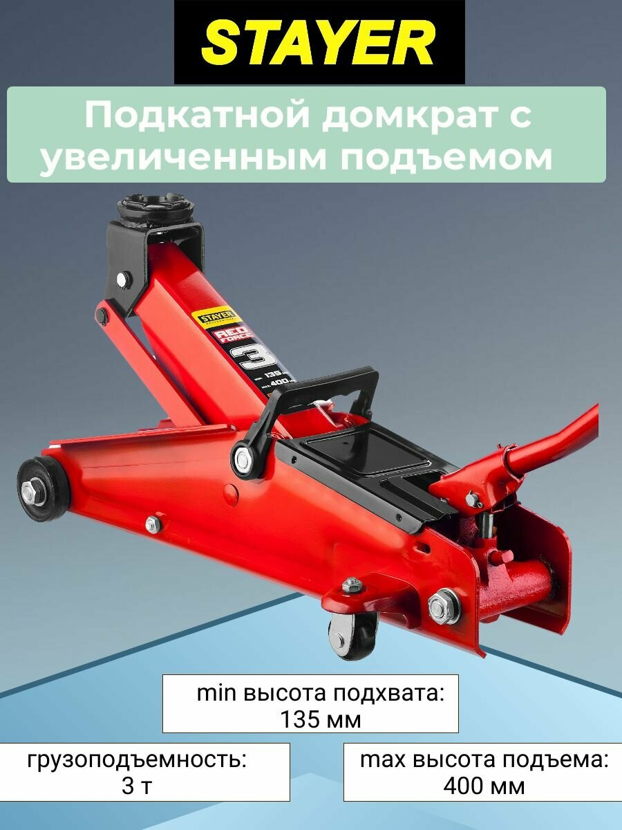 Домкрат гидравлический STAYER подкатной 3т 43154-3