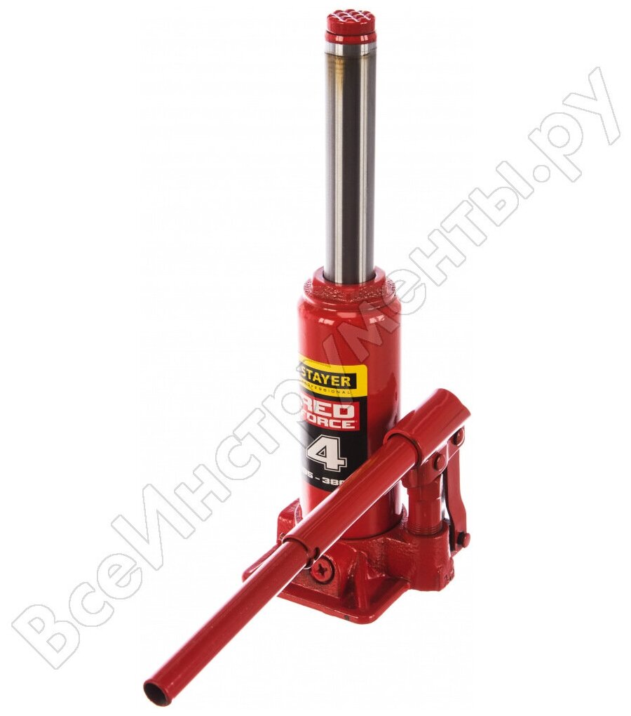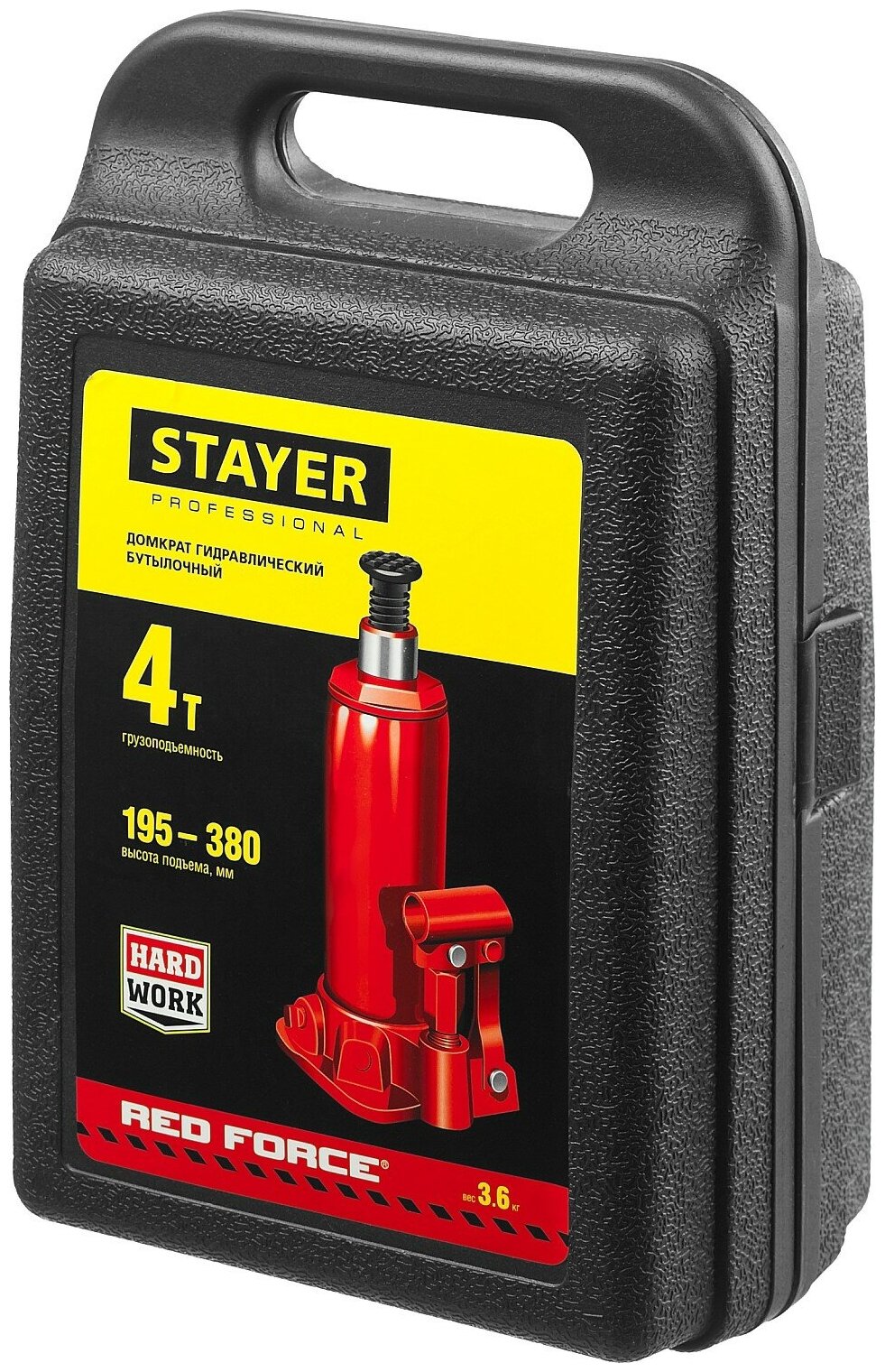 Домкрат Stayer RED FORCE 43160-4-К гидравлический бутылочный в кейсе 4т 194-372 мм