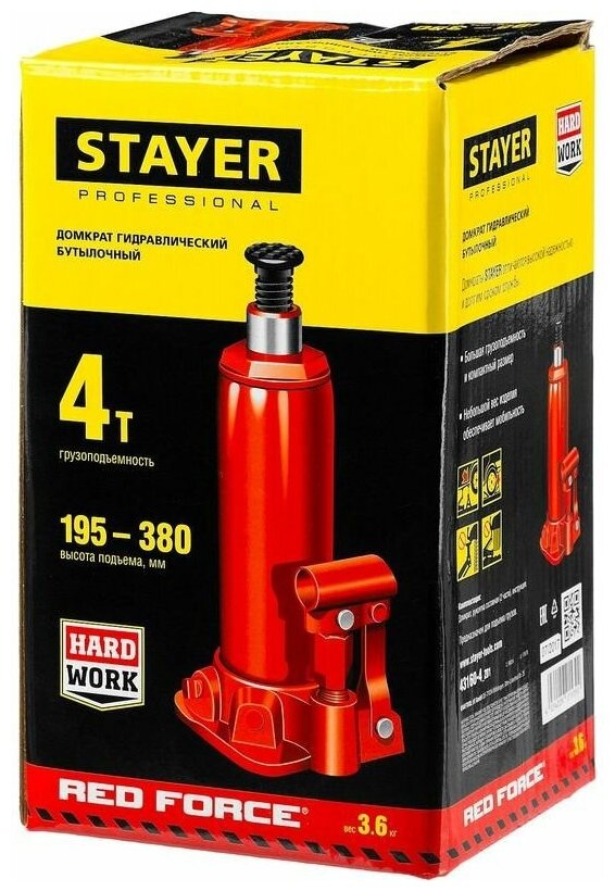 Домкрат гидравлический STAYER бутылочный 4т 43160-4-K_Z01