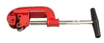 Труборез Stayer предназначен для резки труб из меди, латуни, алюминия, отпущенной стали и полихлорвинила. Режущие элементы изготовлены из инструментальной стали. Режущее усилие регулируется винтом с Т-образной рукояткой. Труборез имеет металлический окрашенный корпус.
