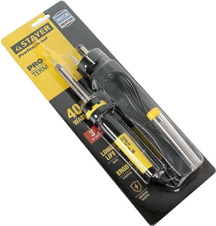 | Доп. наименование Водопад | Электропаяльник Stayer Proterm 55300-40 40Вт 220В конус двухкомпонентная рукоятка |