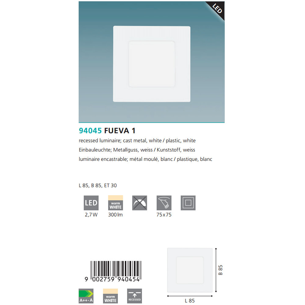 Светильник встраиваемый Eglo Fueva 94045