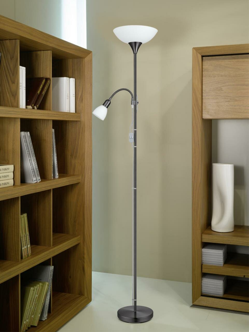 Торшер для чтения - продукт известной компании Eglo (Австрия). Имеет максимальную мощность 85 Вт, освещает площадь до 4 кв. м. Отлично подойдет для таких мест, как спальня, гостиная, кабинет. Впишется в интерьеры следующих стилей: Модерн.
