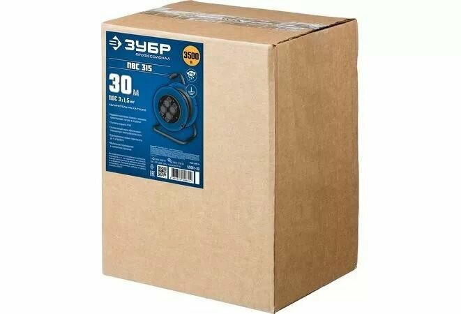| Доп. наименование Водопад | Удлинитель на катушке Зубр Профессионал ПВС-315 55081-30 30м 3500Вт 4 гнезда IP44 3х1.5 мм² |