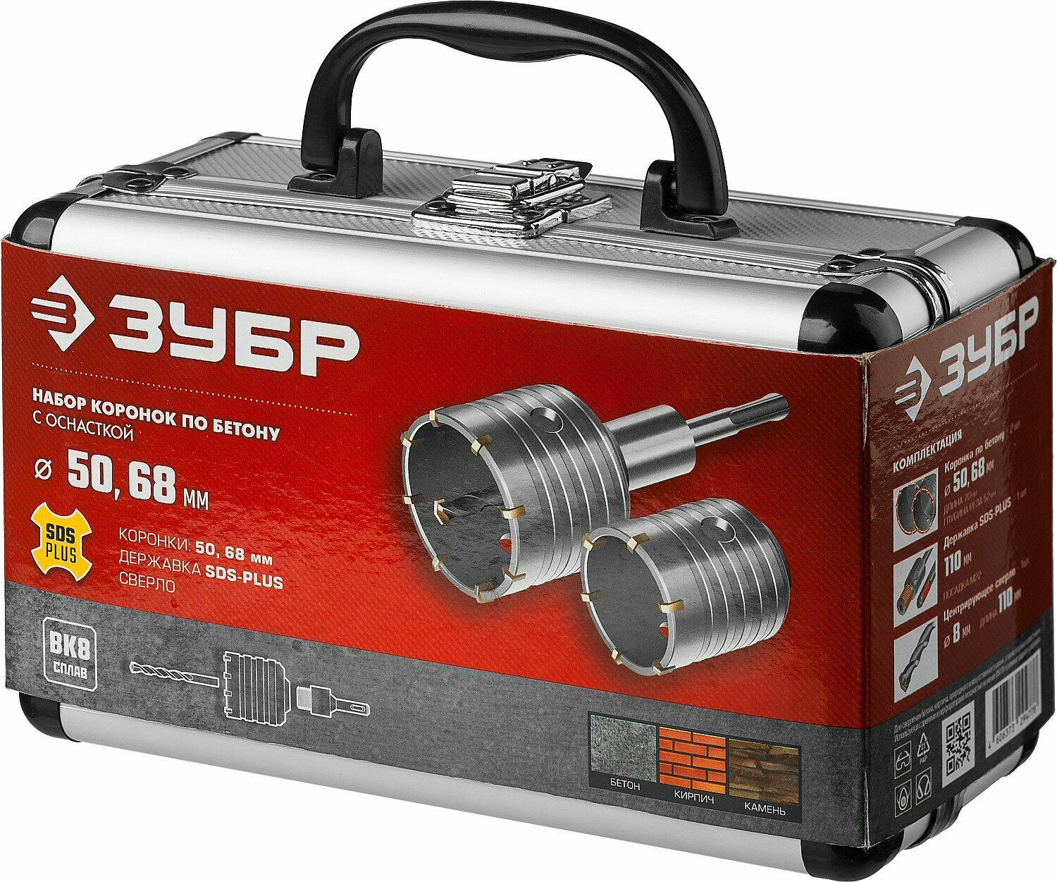| Доп. наименование Водопад | Набор коронок по бетону с оснасткой Зубр 29211-H2 Ø 50, 68 мм |