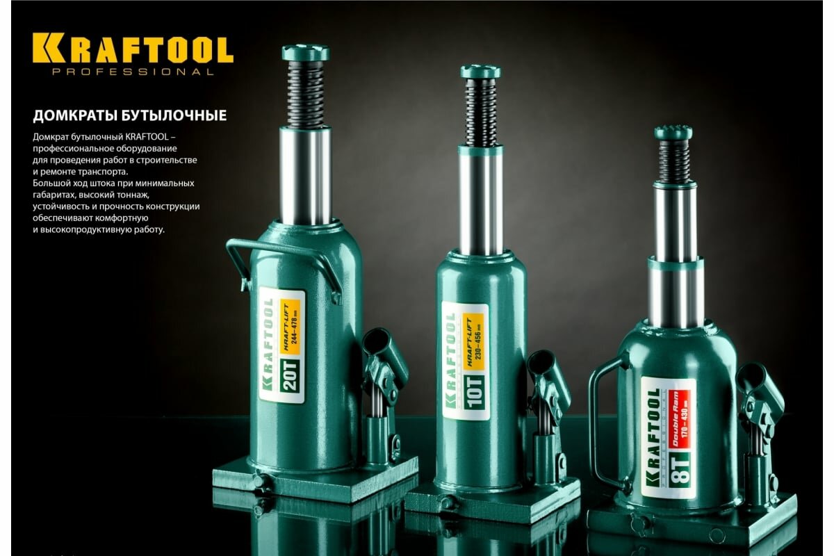 | Доп. наименование Водопад | Домкрат Kraftool DOUBLE RAM 43463-10 двухштоковый бутылочный, с увеличенным подъемом 10т 170-430мм |